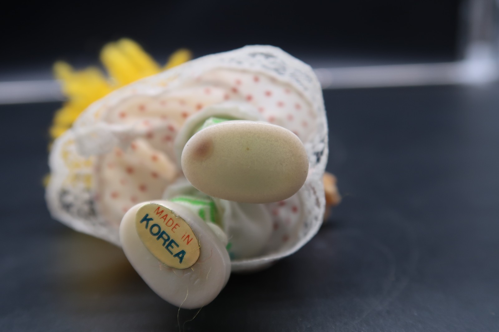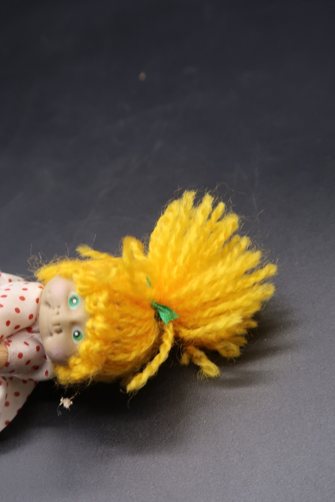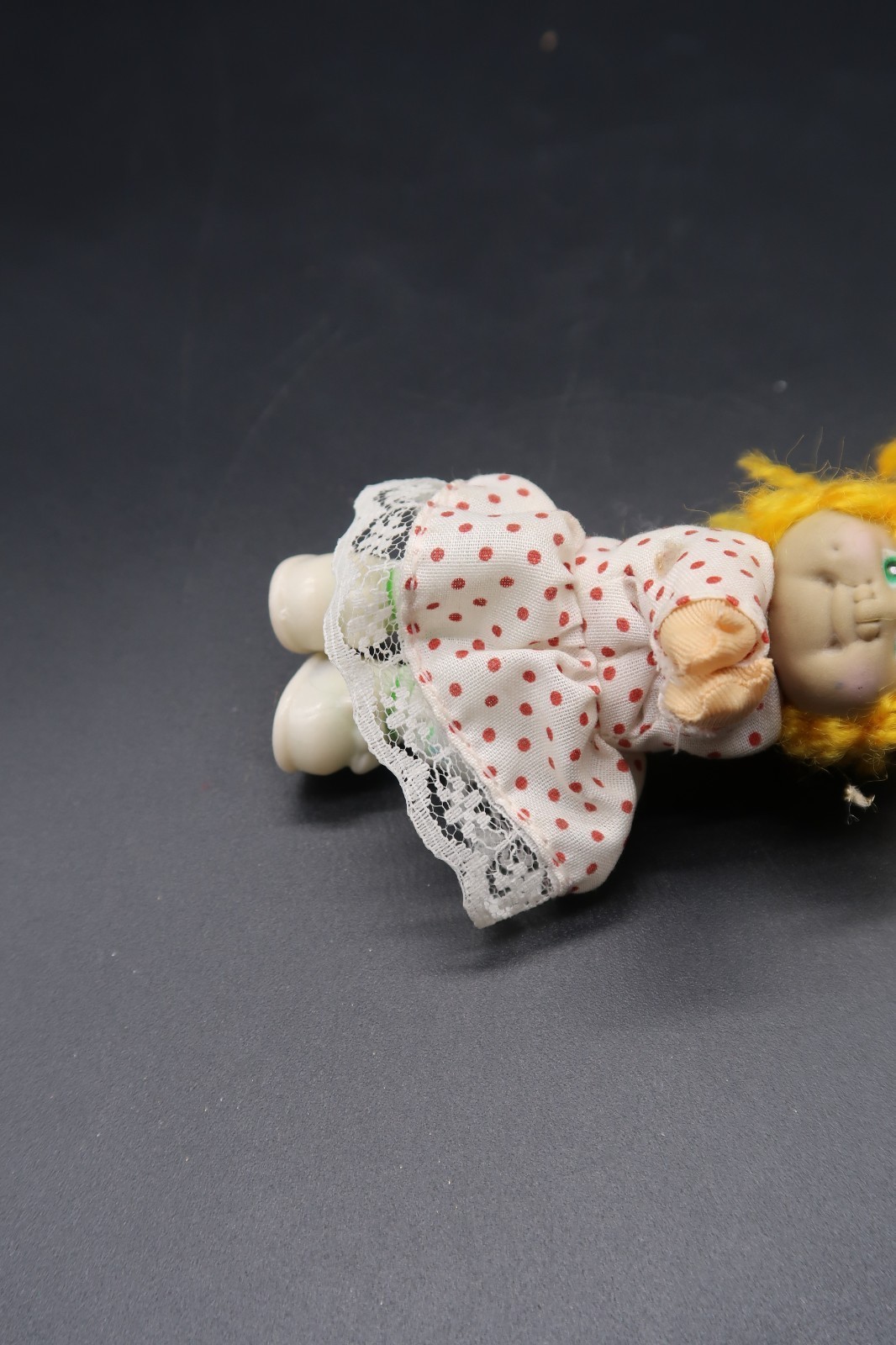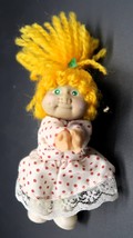 Vtg Cabbage Patch Kids Clip On Hugger Doll Yellow Yarn Hair Green Eyes Polka Dot