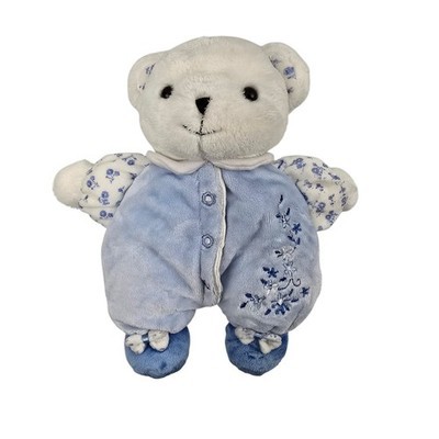 Carters Plush Teddy Bear Pretty Blue White Floral Stuffed Animal Baby Toy Rattle
