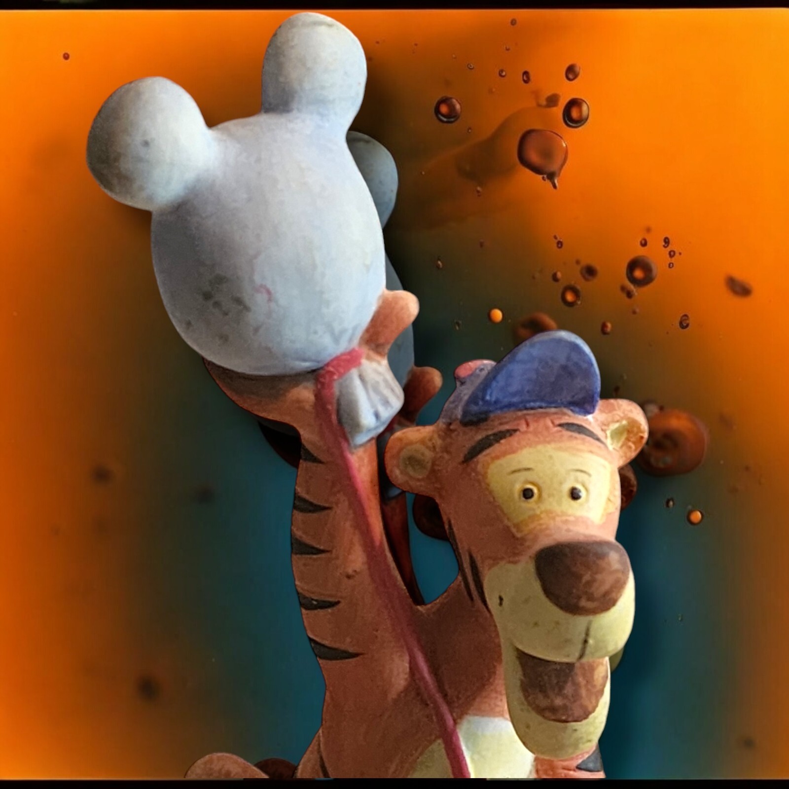 Walt Disney 4" Ceramic Tigger Figurine holding a Mickey Mouse Balloon