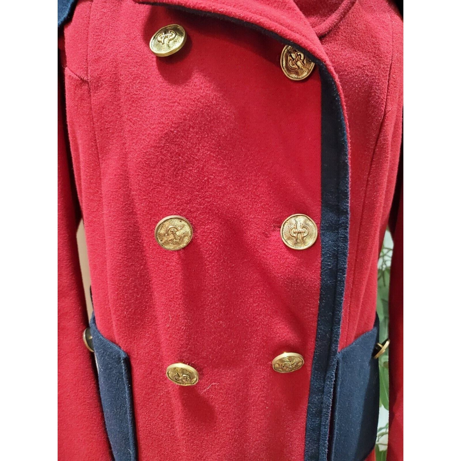 Vintage Forever21 Red Polyester Double Breasted Long Sleeve Long Coat Size Large