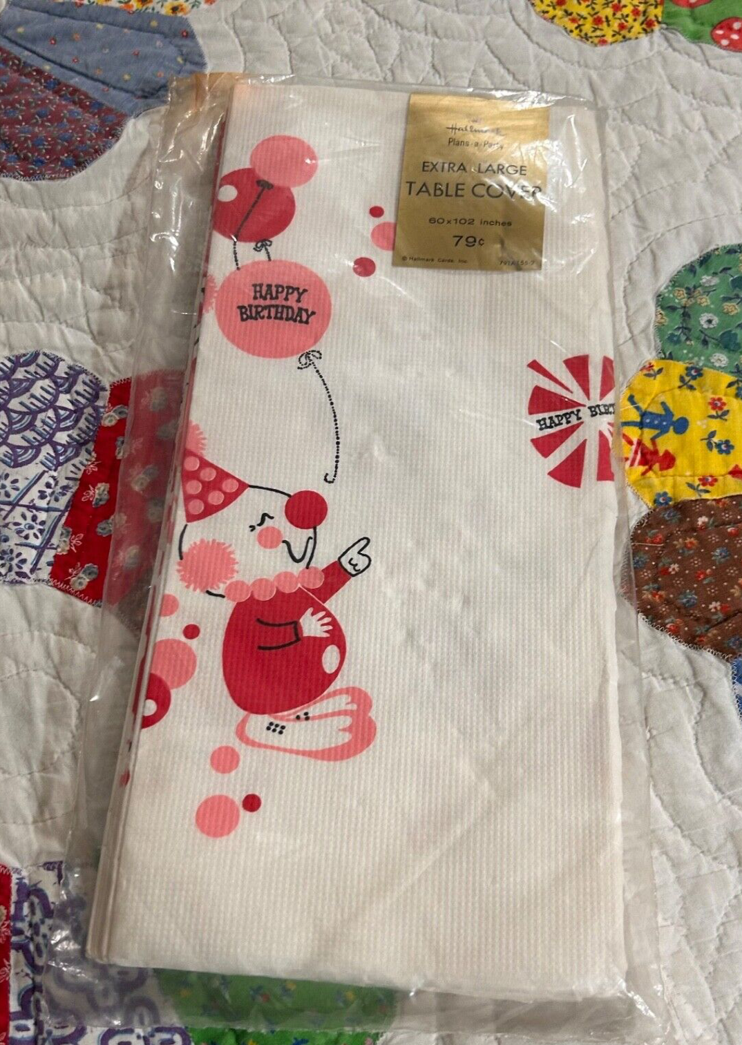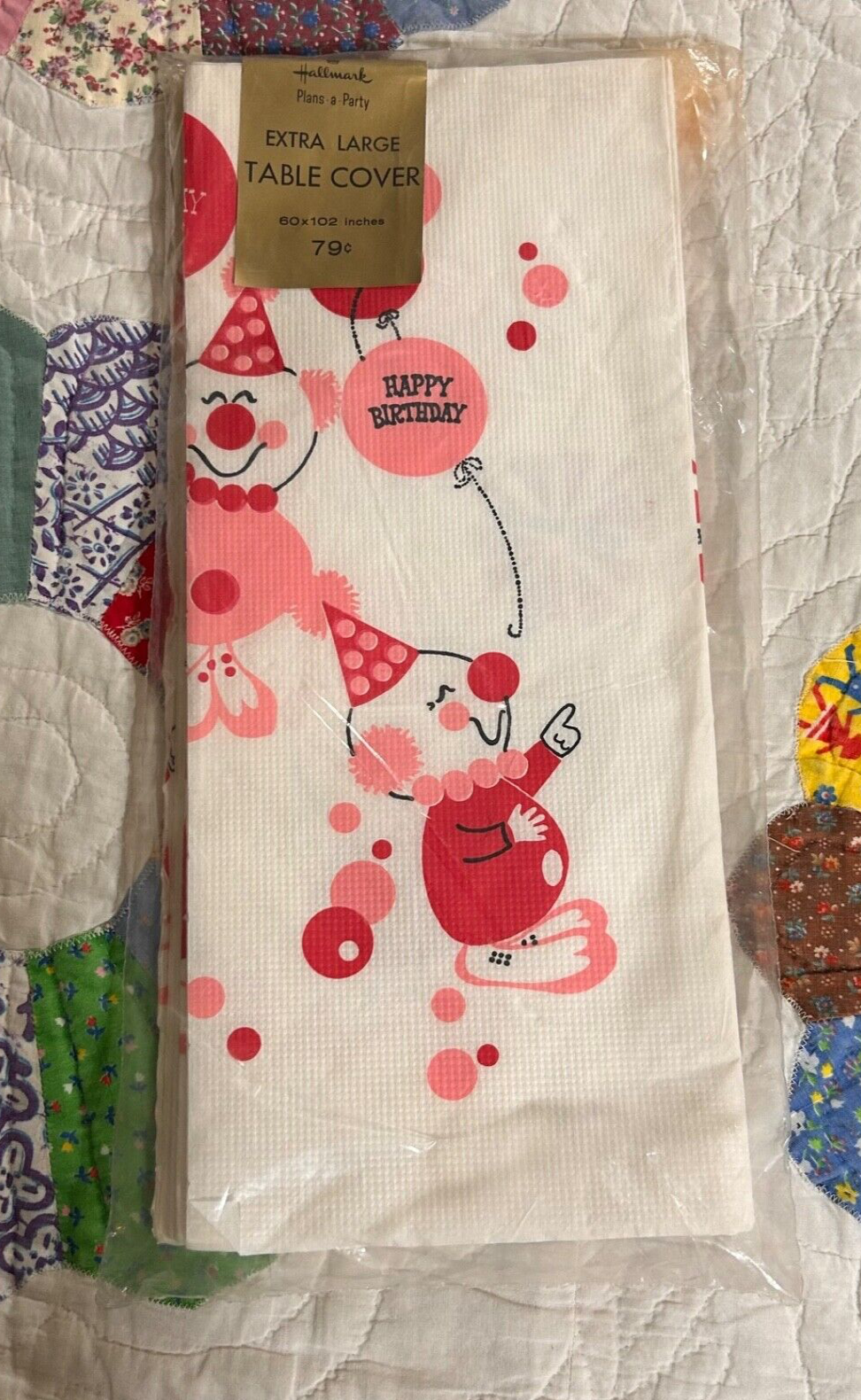 Vintage Hallmark Table Cover 60 x 102" Paper Plans A Party Pink Birthday Clowns NEW