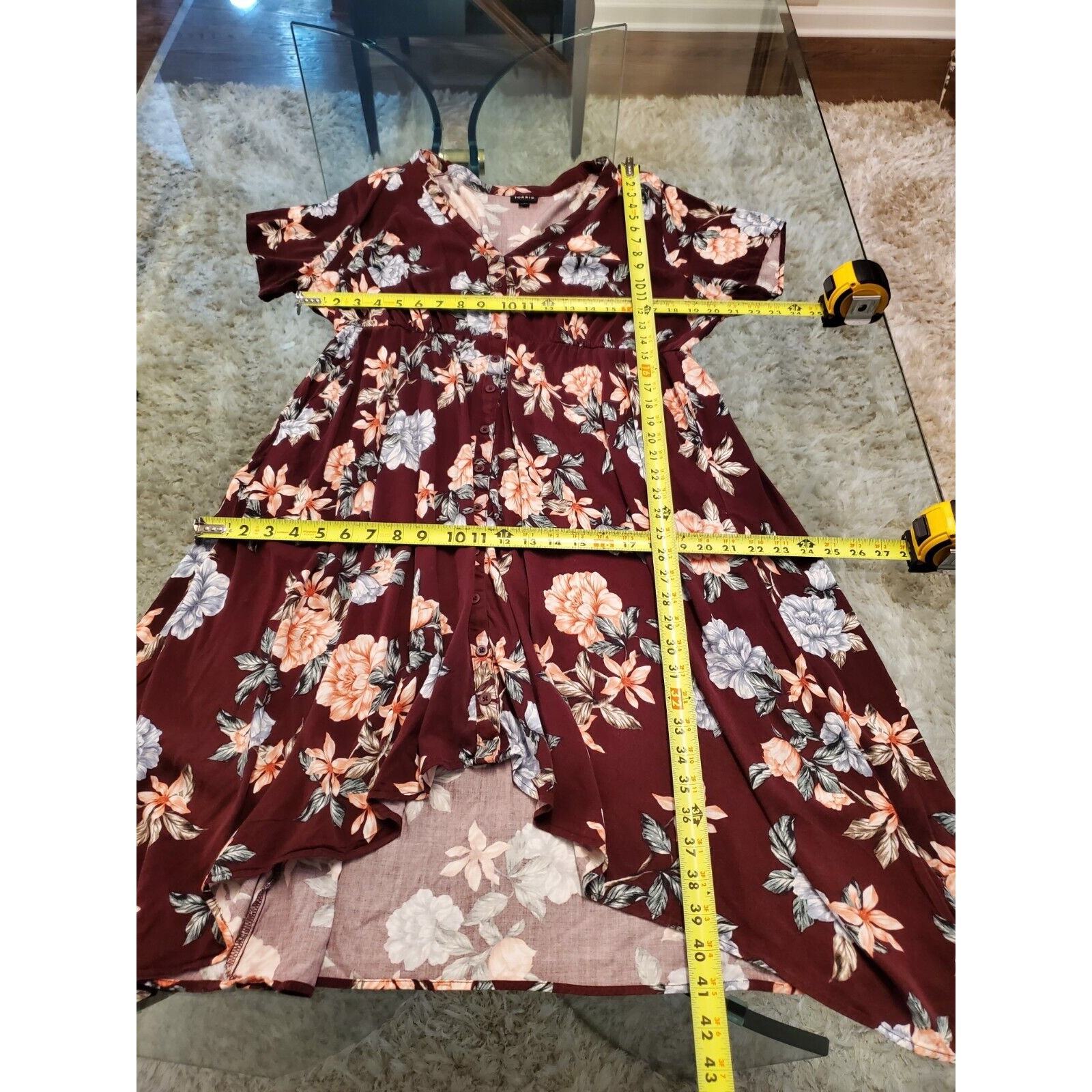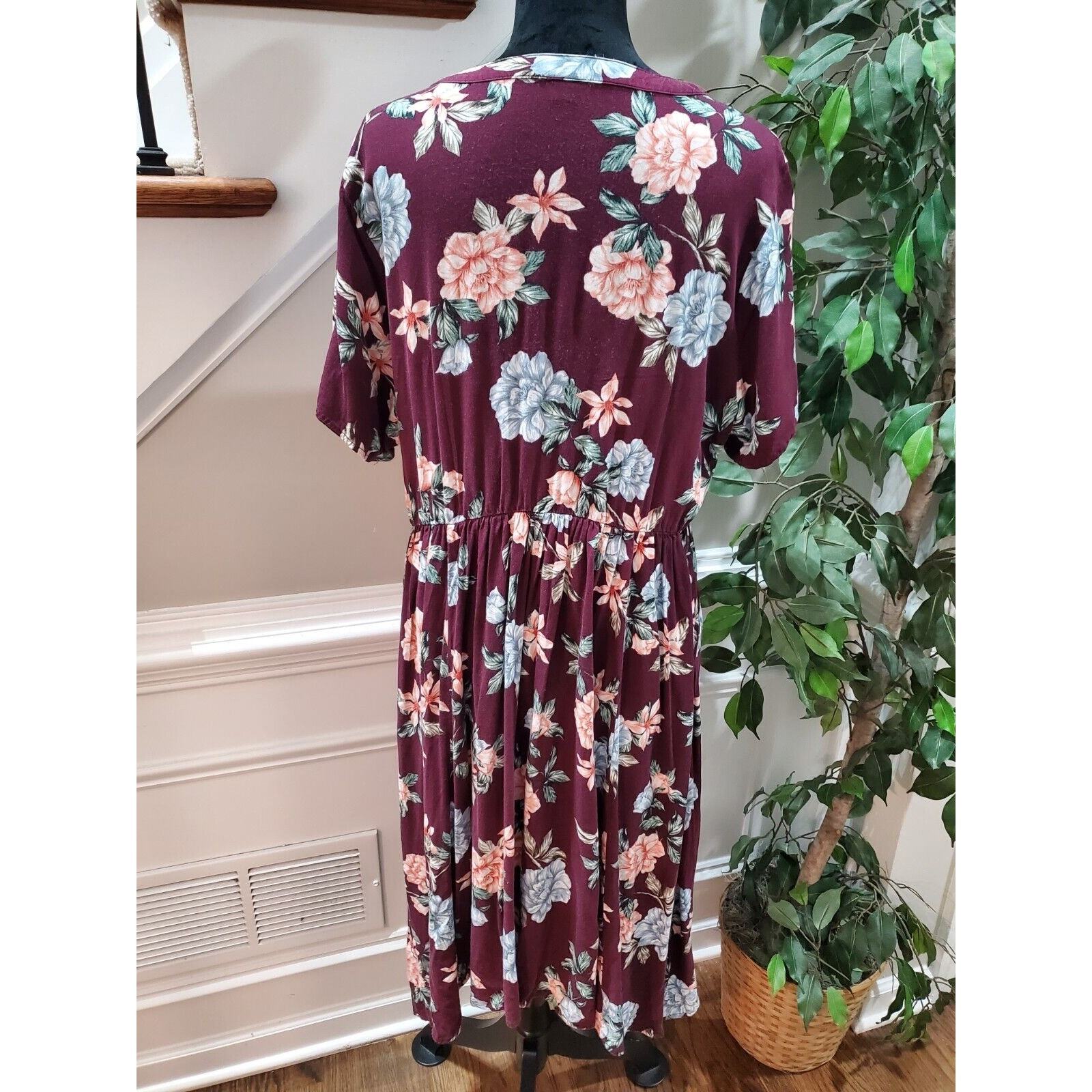 Torrid Women's Maroon Floral Polyester V-Neck Half Sleeve Knee Length Dress XL.