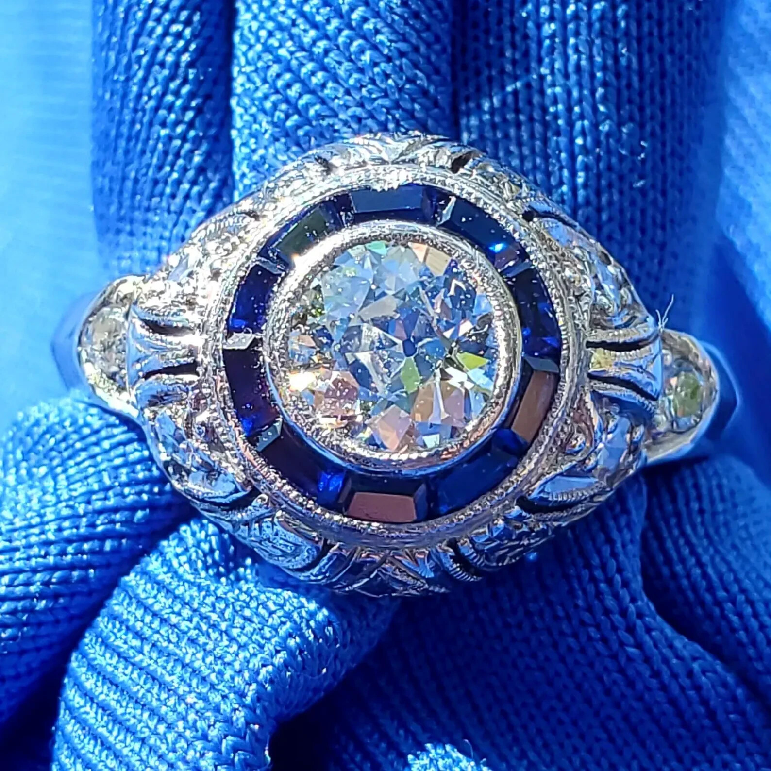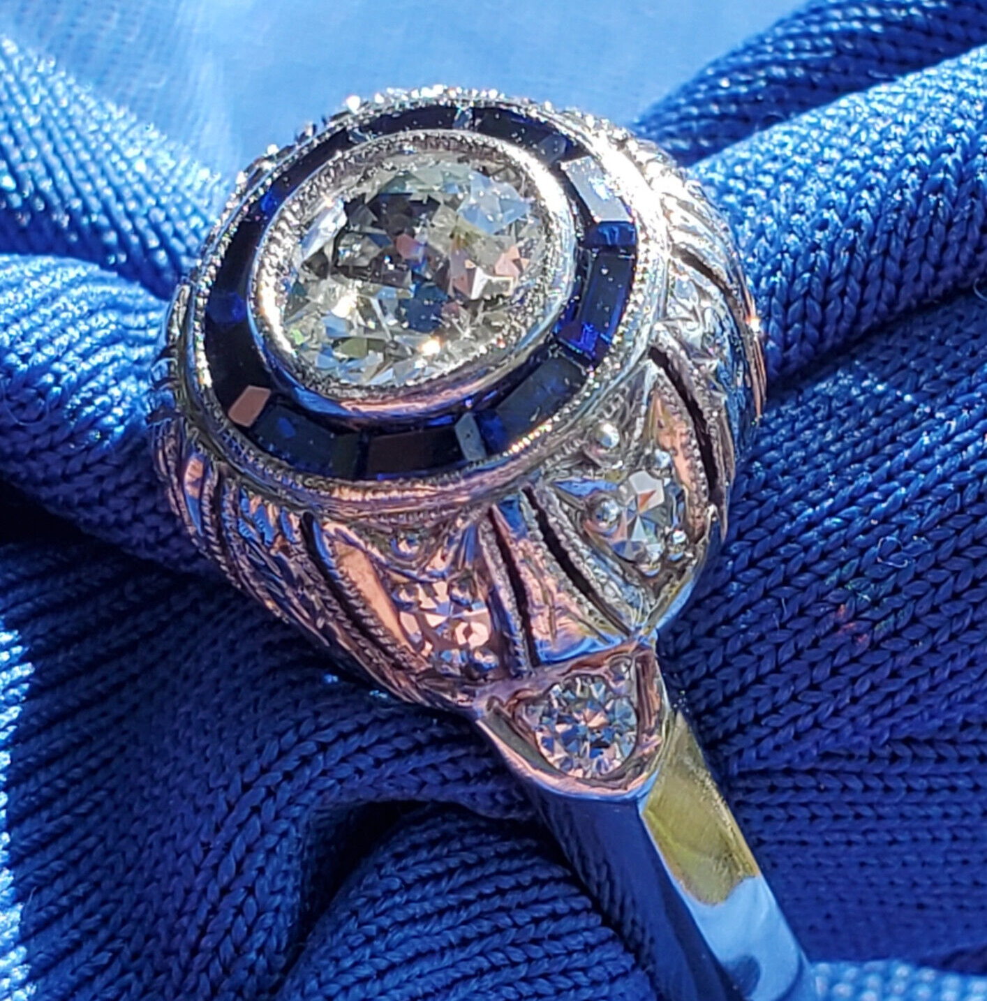 MAGNIFICENT DIAMOND SAPPHIRE GATSBY ERA SOLITAIRE.