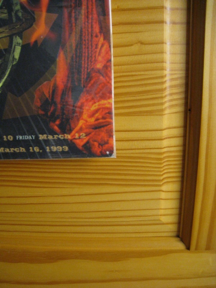 Concert poster approximately 13 inches by 19 inches. This is not in mint condition. It has small nail holes in the corners and is wrapped in a plastic sleeve.
