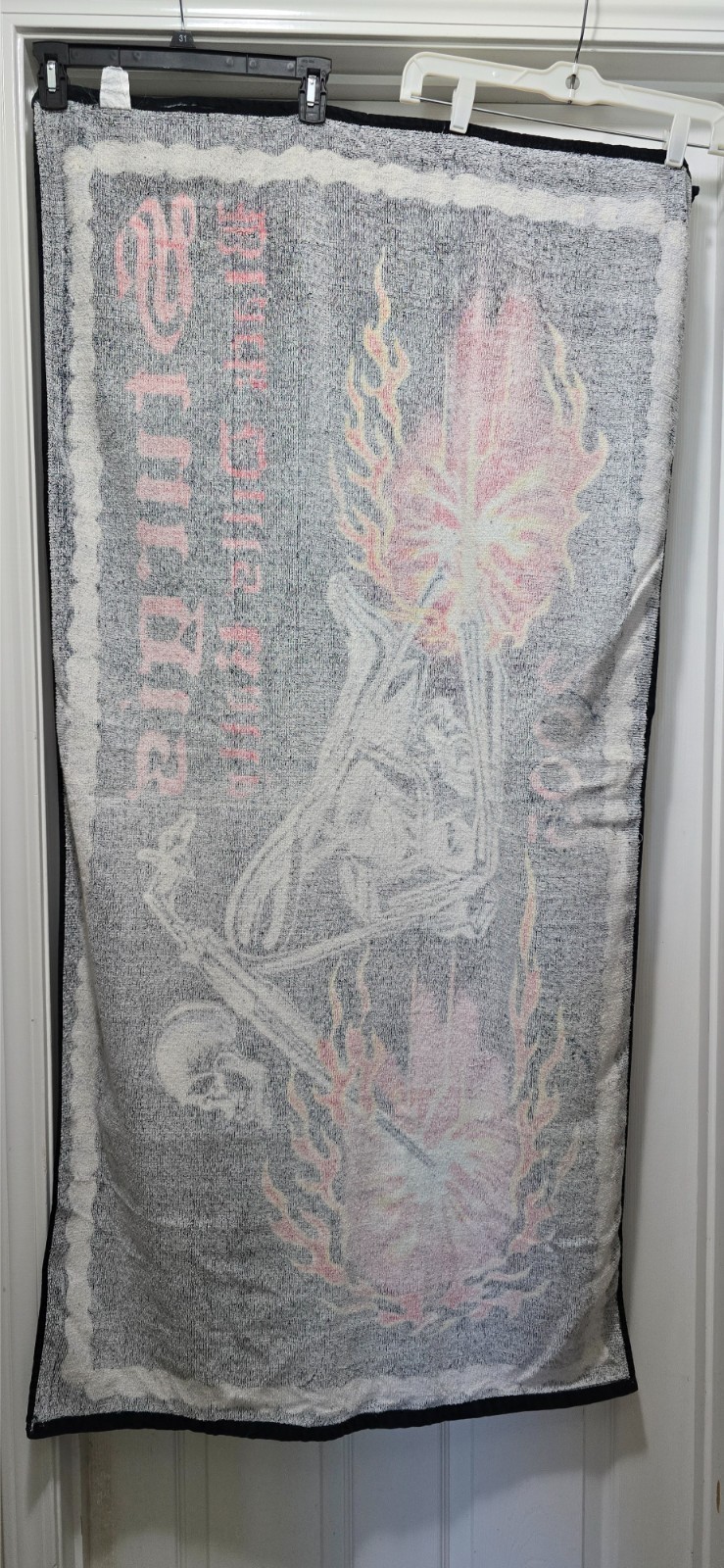 VTG Sturgis 2005 Black Hills Rally Beach Towel Motorcycle Flames Skull 29 X 56