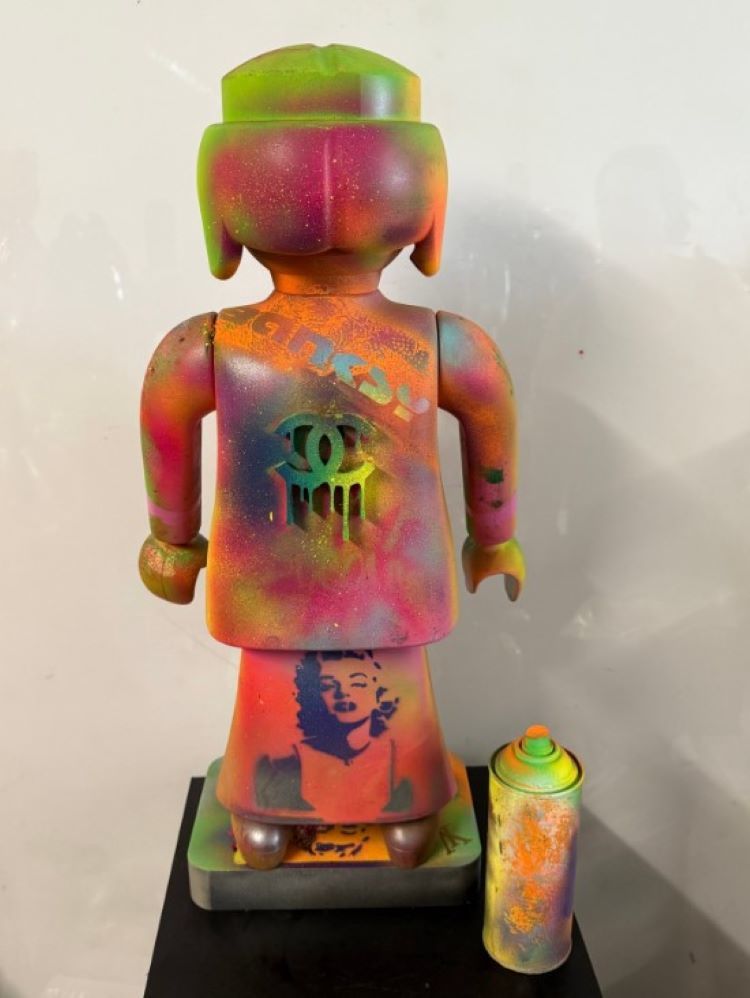 Unique 3D mixed-media pop art object by Daluxe Art, hand-finished, signed, accompanied by the original spray can and Certificate of Authenticity.