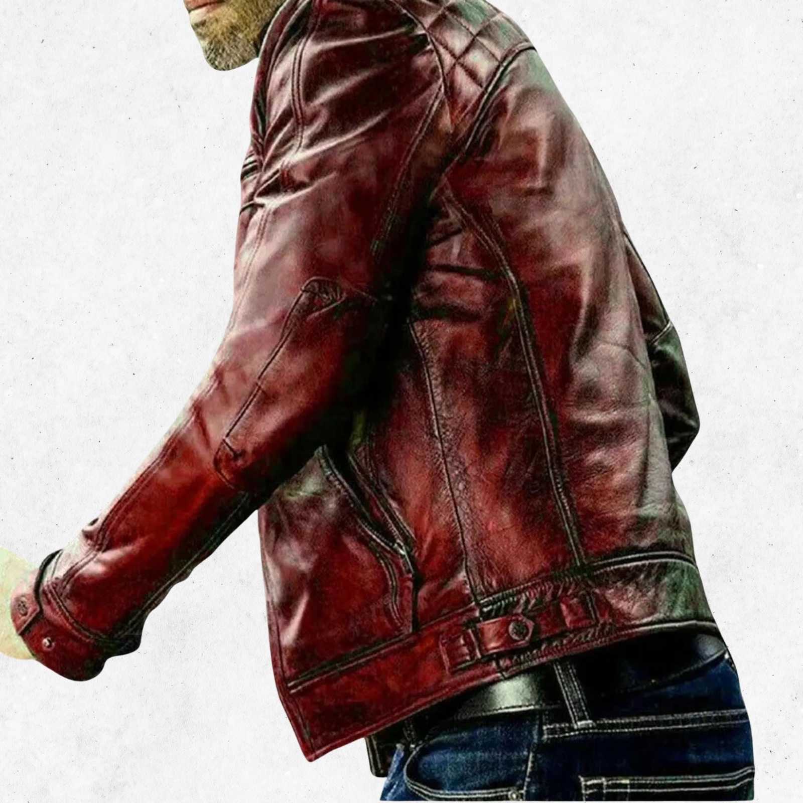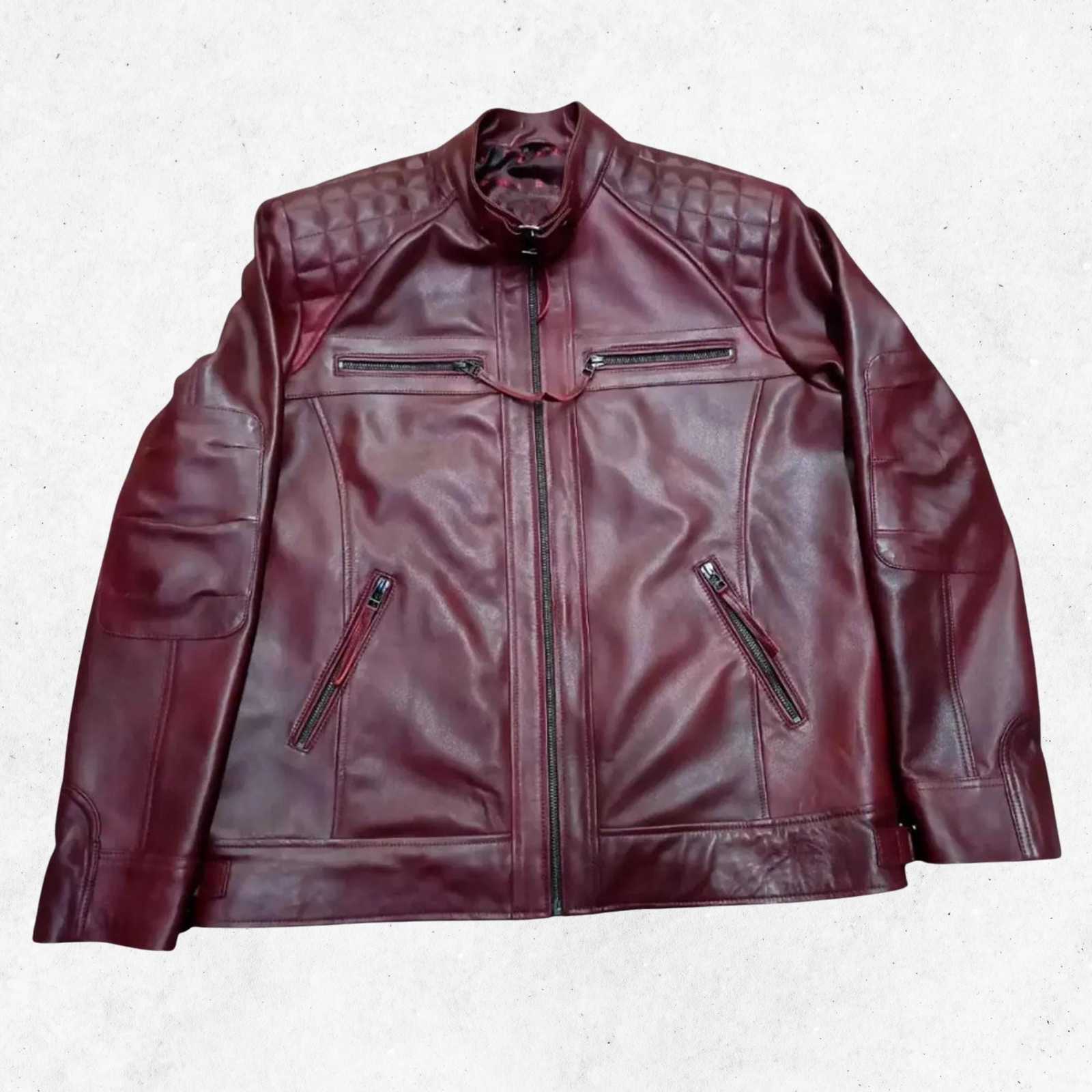 Handmade Maroon Leather Biker Jacket: Slim Fit Quilted Moto Coat