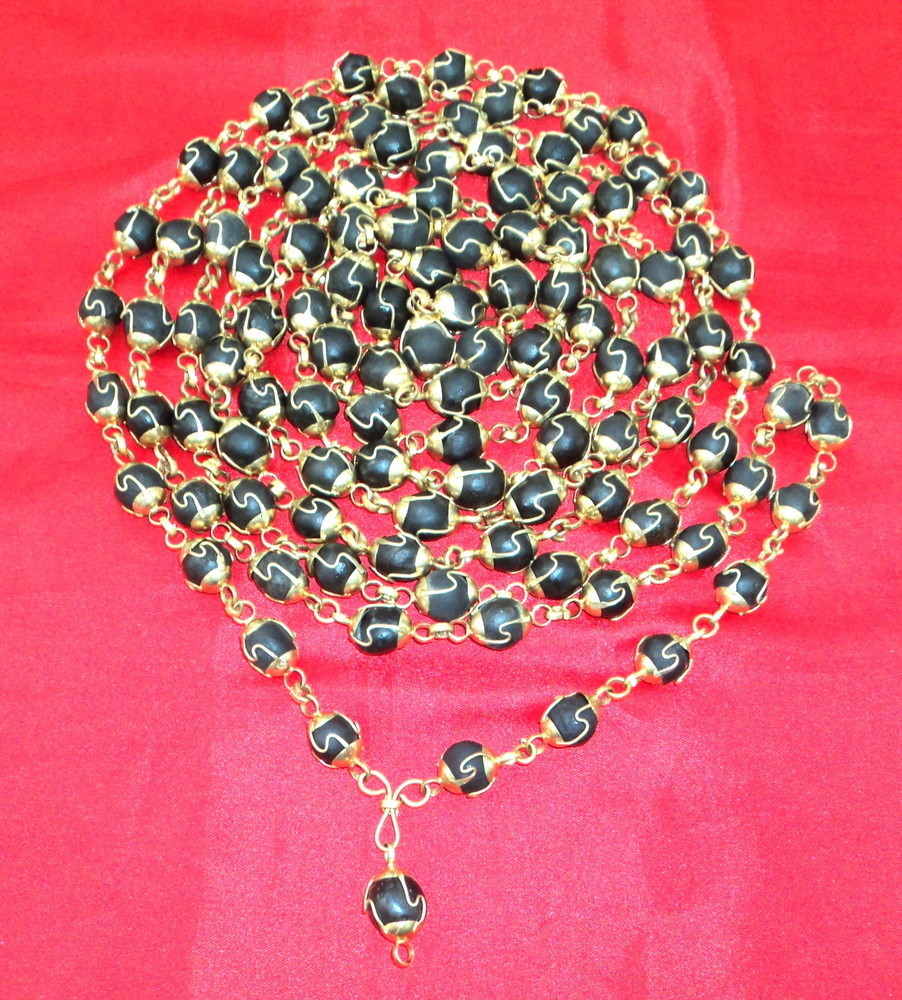 ** Donating the Shaligram Rosary to Lord Vishnu is considered very auspicious. Wearing of small Shree Shaligram malas by the devotee bestows the devotee with extreme protection and peaceful environment. The Shree Shaligram rosary has been designed in gold, silver and panchdhatu as these three matels are very auspicious as per the old texts. If the rosary is designed in these metals the effect of the worship multiply manifold times.
