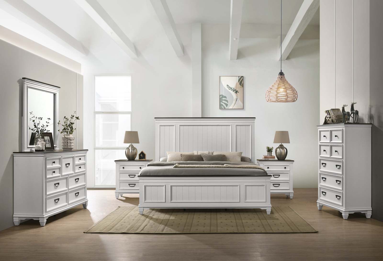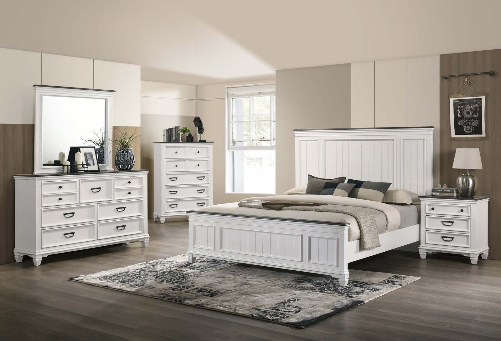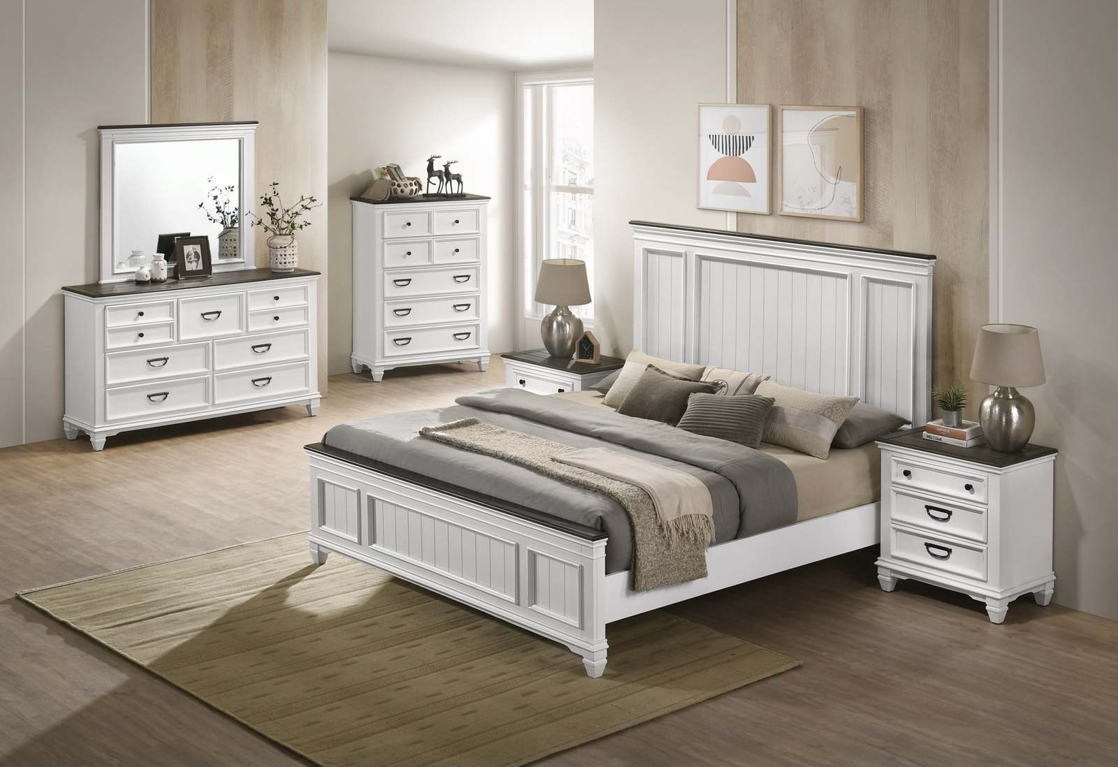 Place of Origin Malaysia Main Color Antique White+Gray Main Material Wood Product Style Contemporary,Modern Use Case Bedroom Bed Size Queen Pieces Included Bed Included,Chest Included,Dresser Included,Mirror Included,Nightstand Included Number of Pieces 5 Piece Set Bed features Distressed Finish Box Spring Requirements Box Spring Required Wood Type Rubberwood Wood Tone White Bed Frame Material Wood Dangerous Goods #dangerFlag#