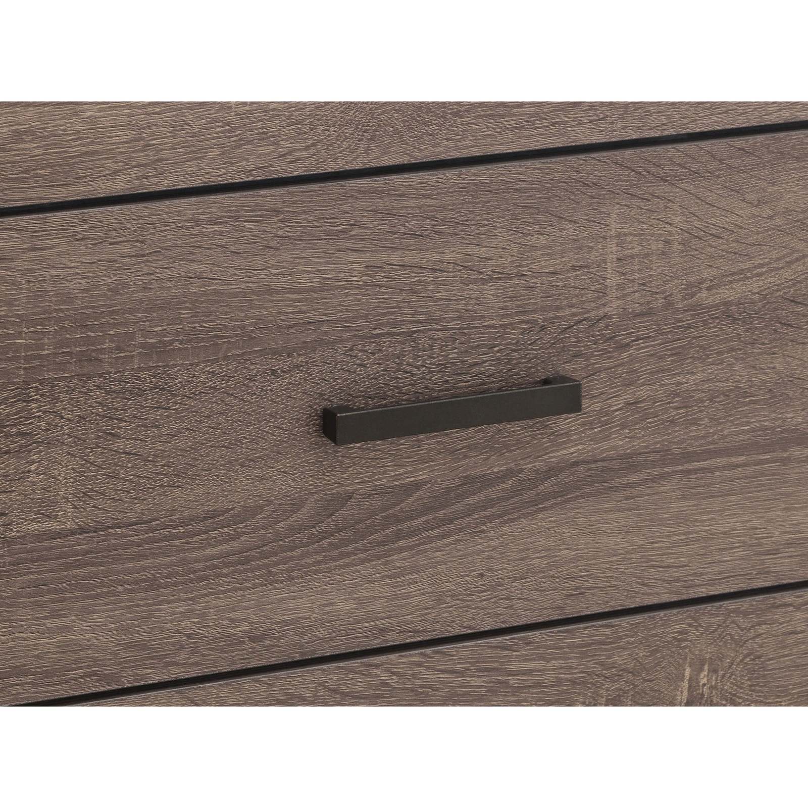 Sturdy engineered wood construction combined with durable laminate veneer resists scratches, stains, and everyday wear, while matte dark bronze hardware provides a modern, stylish contrast