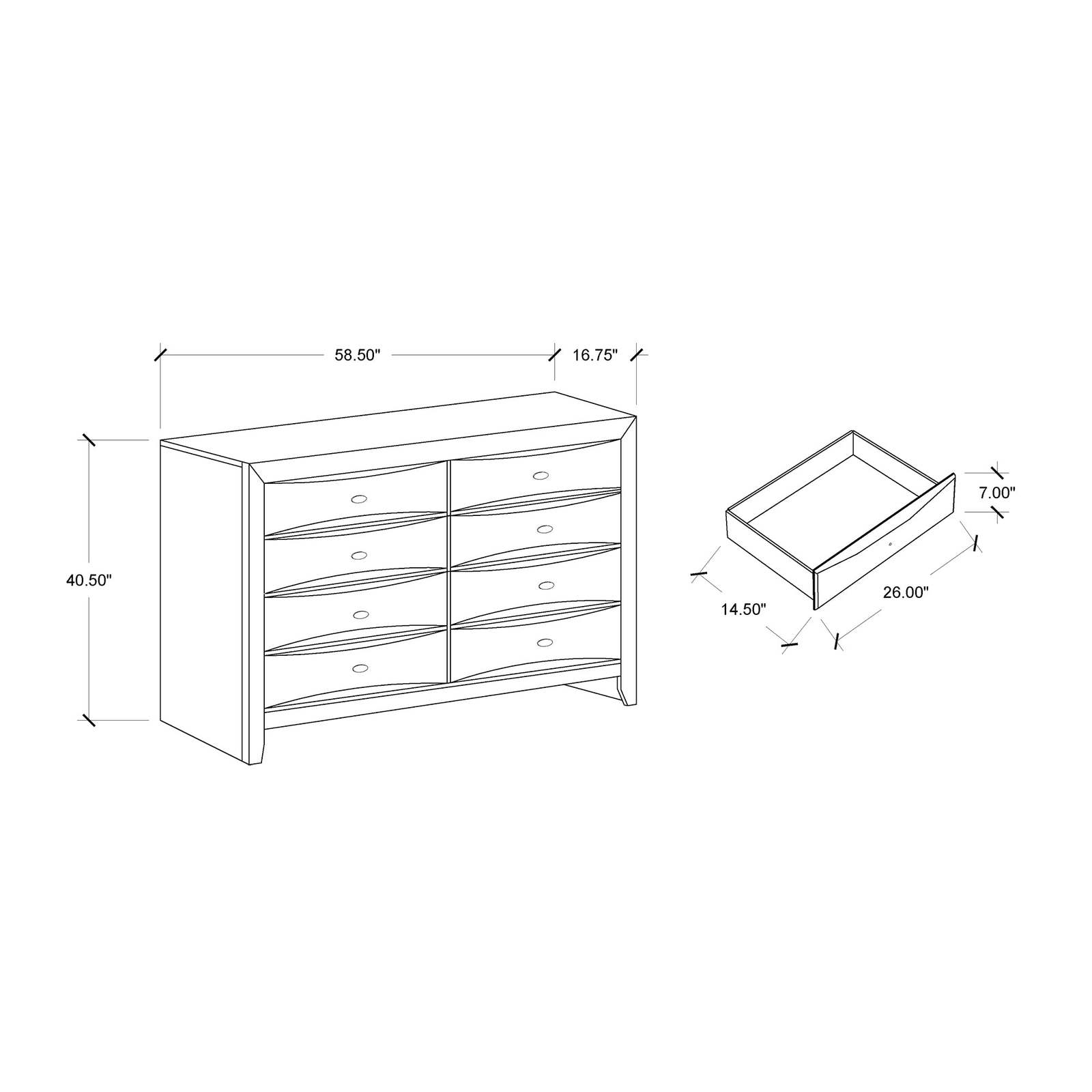 Set Includes: Bed with hydraulic lift storage, 6 Drawer Dresser, mirror, 2-Drawer nightstand, and a coordinating 5-Drawer chest.