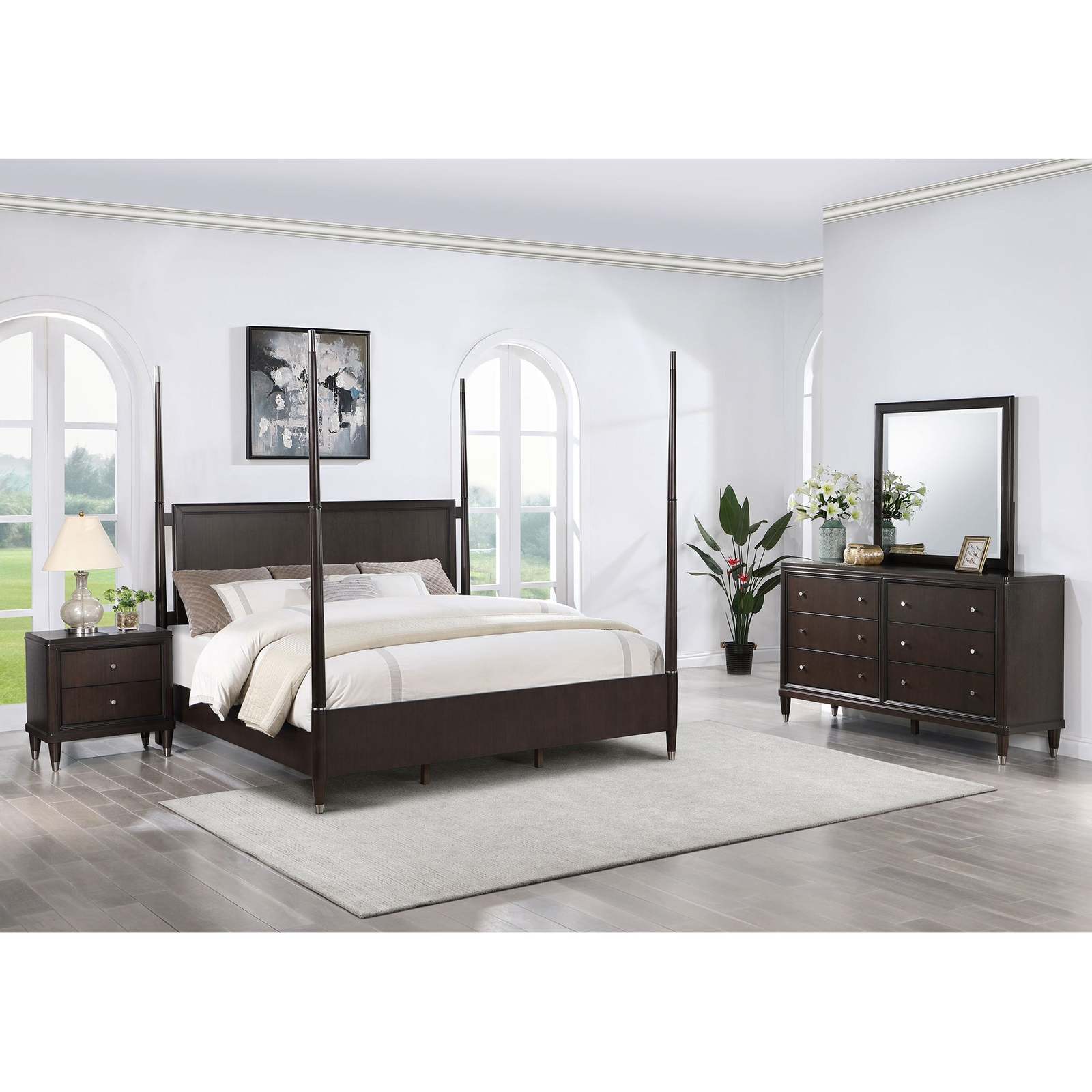 Customize your sleep experience with the inbuilt electric fireplace(Non-Heating) nestled within the headboard. Set includes King Bed(Headboard, Footboard, Rails, 13 Slats), 3-Drawer Nightstand,9-Drawer Dresser, Mirror 5- Drawer Chest.