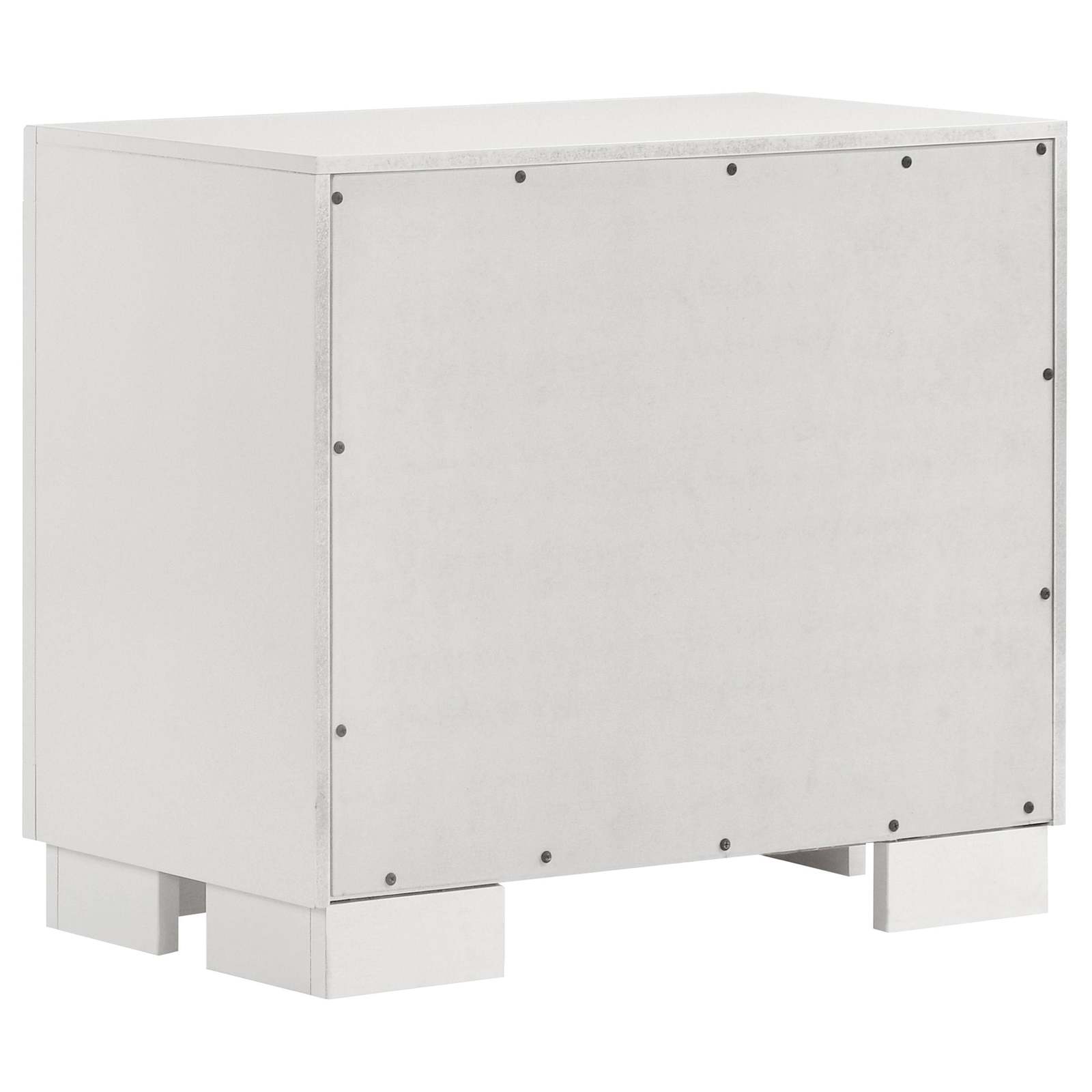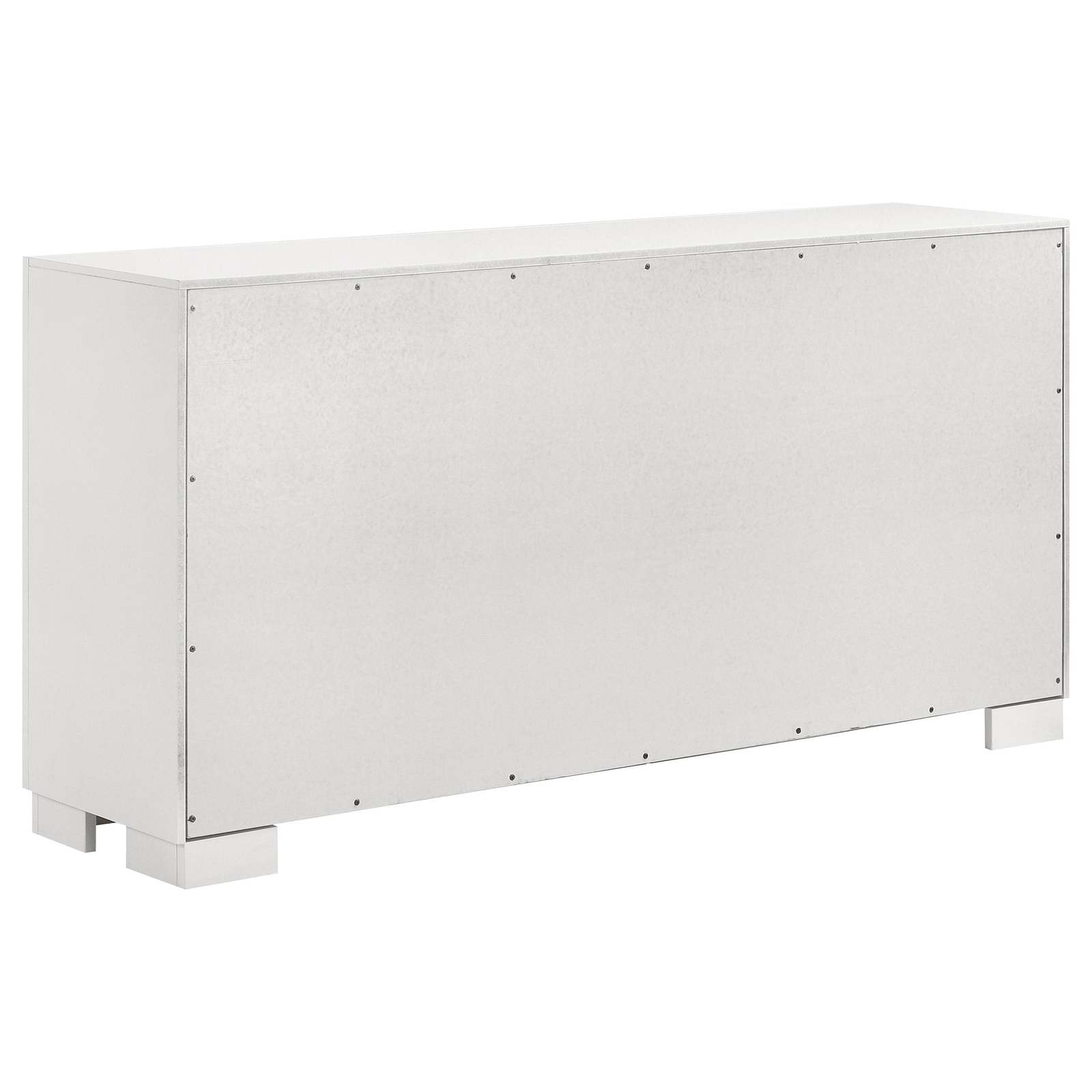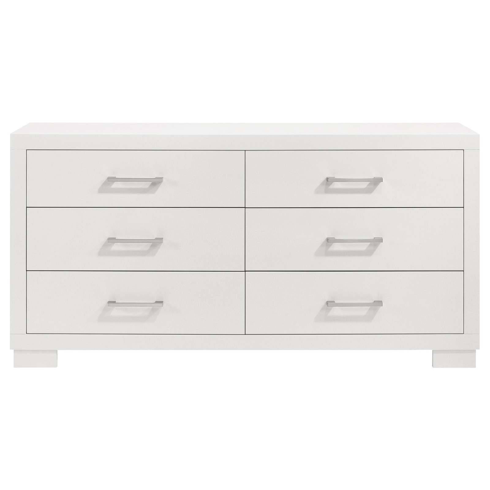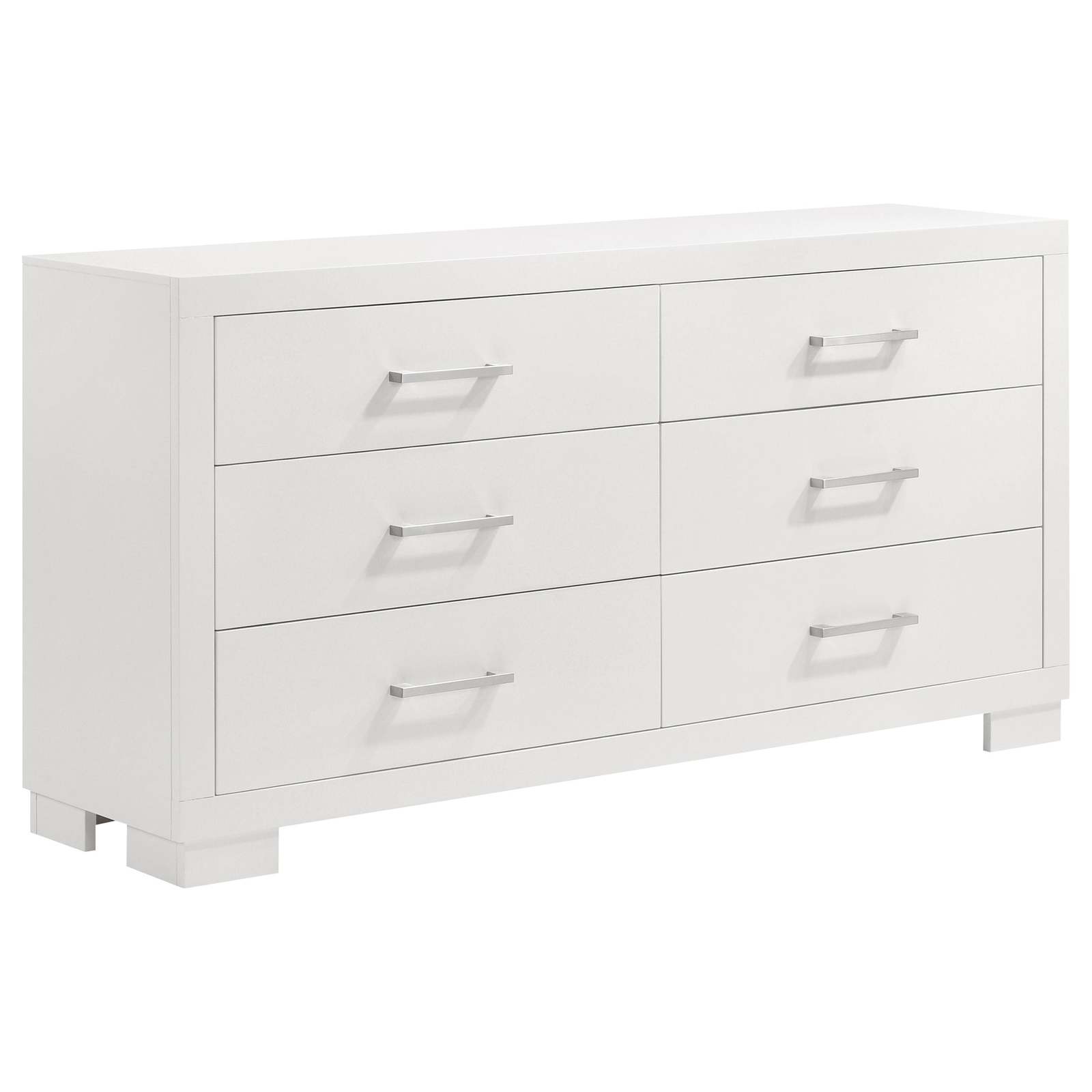 Chrome-finished metal handles and feet provide refined modern accents while storage drawers glide smoothly on durable metal extension hardware