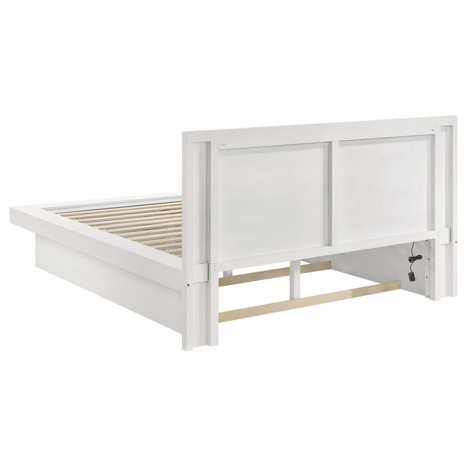 Bed frame is upholstered in soft, durable, and smooth white faux leather, combining comfort with contemporary elegance