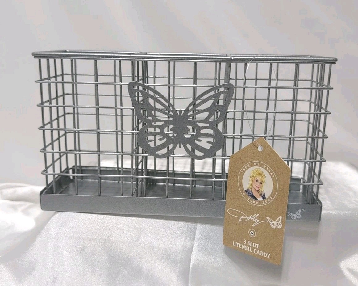 ?Butterfly Utensil Caddy 3 Slot 9" x 3" x 5" Silver Metal