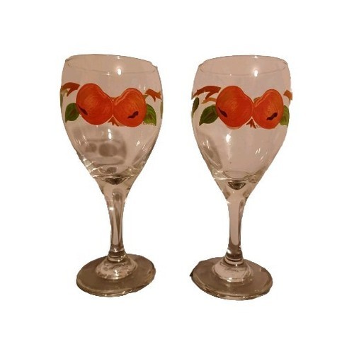 Franciscan Apple 7 1/4 in Water, Wine Goblet Set of 2 Stemware Painted Apple