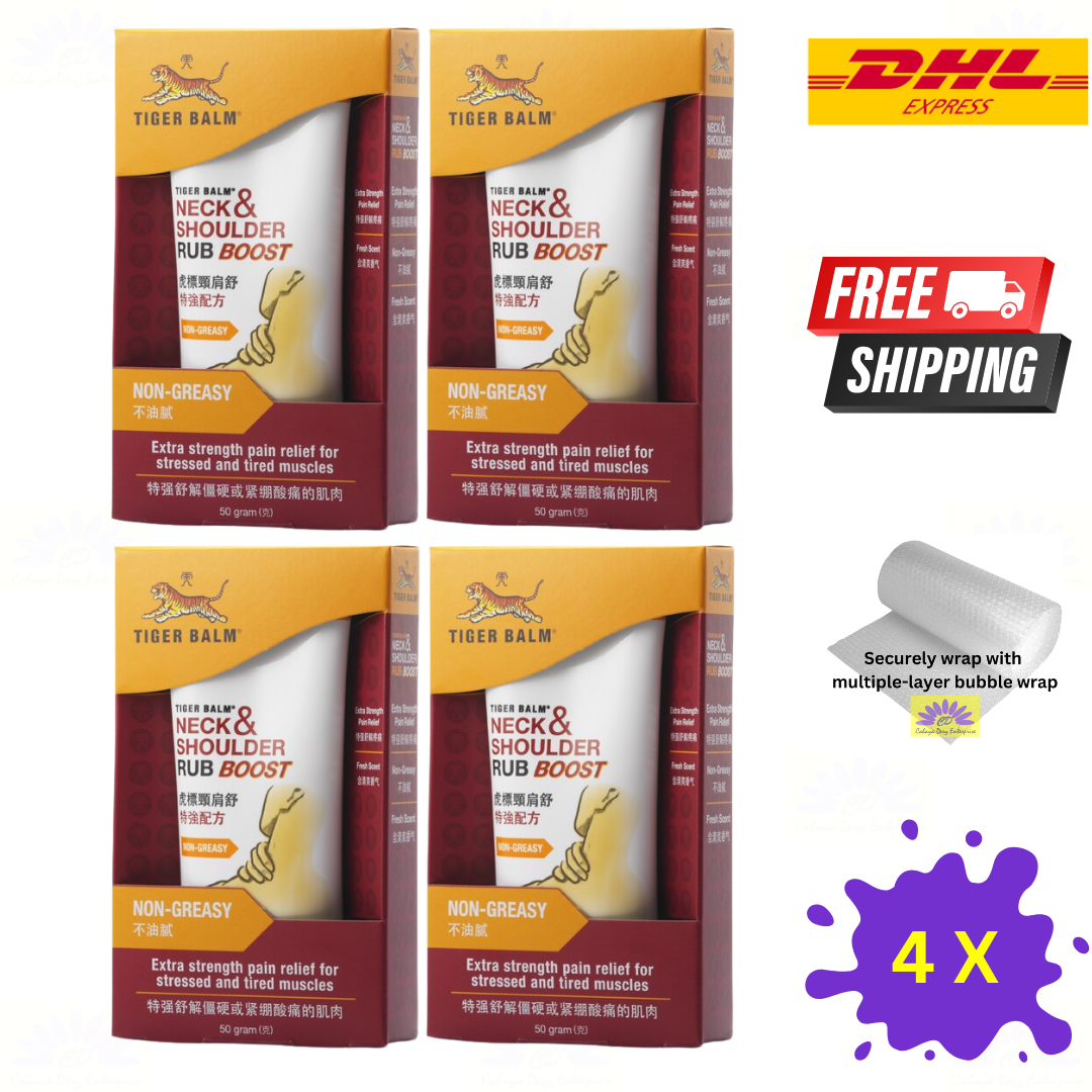 4 x Tiger Balm Neck Spalla Strofina Boost Extra Forza Sollievo dal dolore 50G