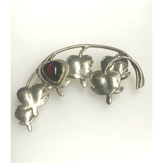 SIGNED GFM 925 STERLING SILVER AND GARNET FLORAL HEART ACCENT BROOCH SKY