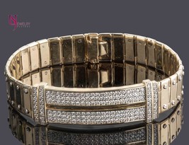 2.90 TCW Men's Id Torny Link Pulsera de diamante 14k oro amarillo solido Hecho a mano 54.2 g 8 ''