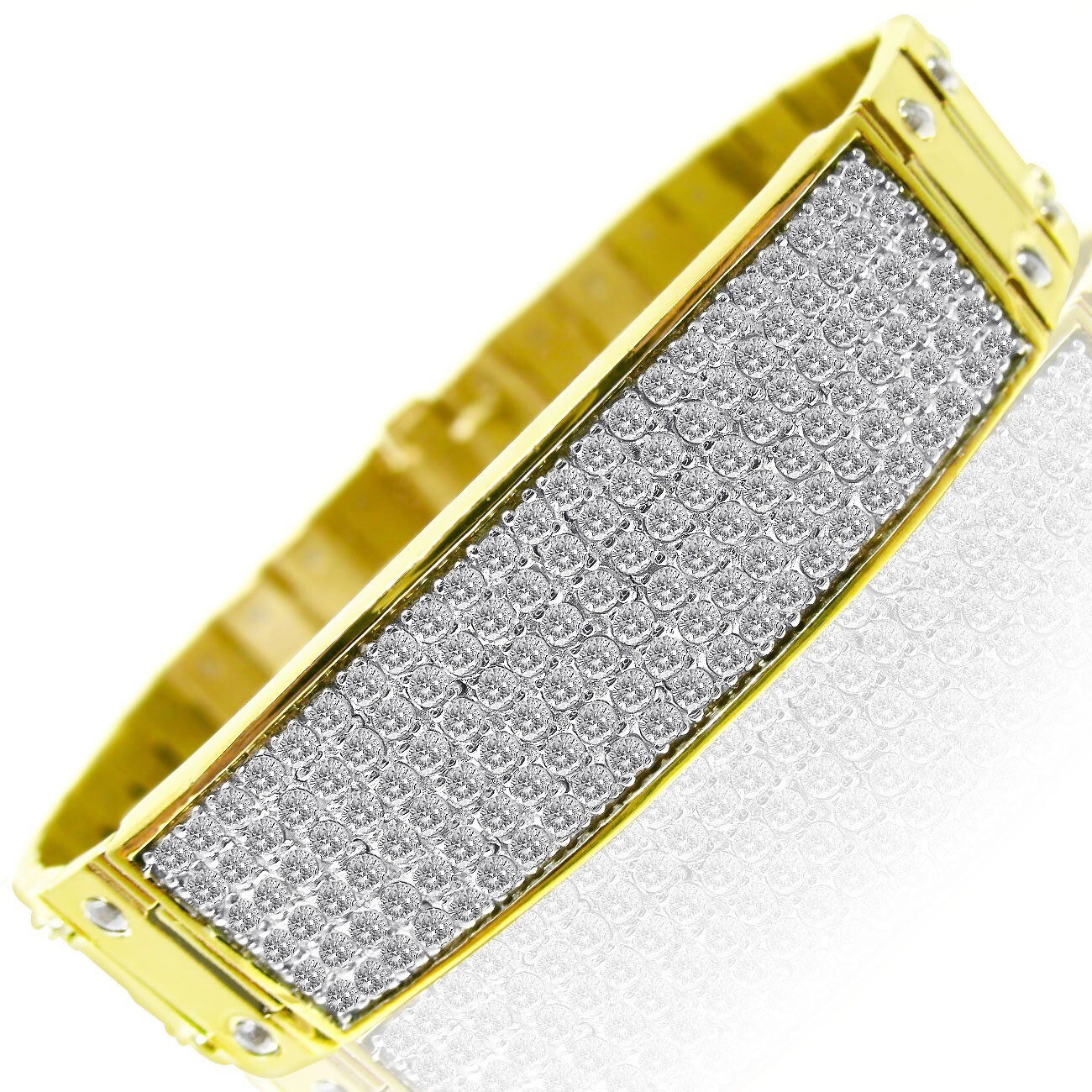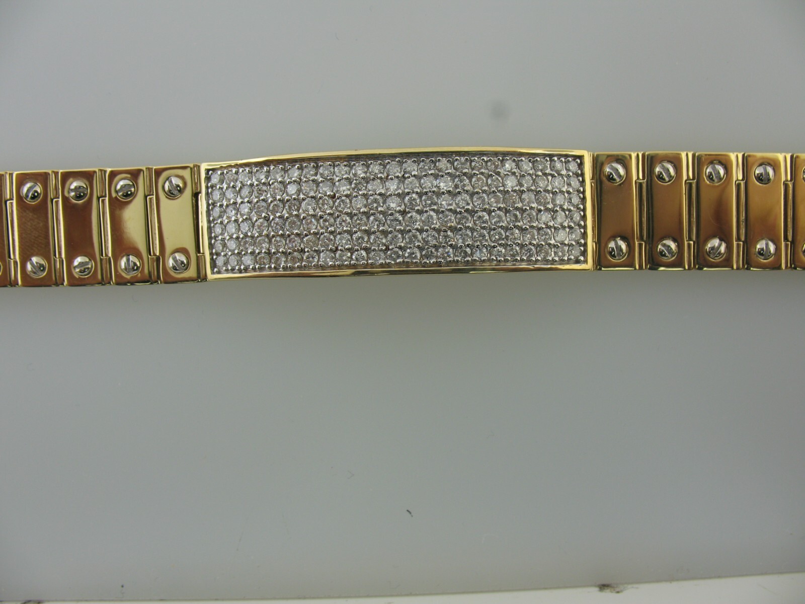 3CT Hombres Id Tornillo Enlace Brazalete Diamante 14k Oro Amarillo Hecho 59.6G