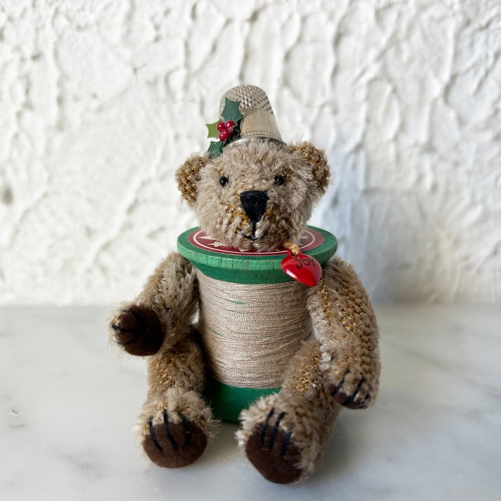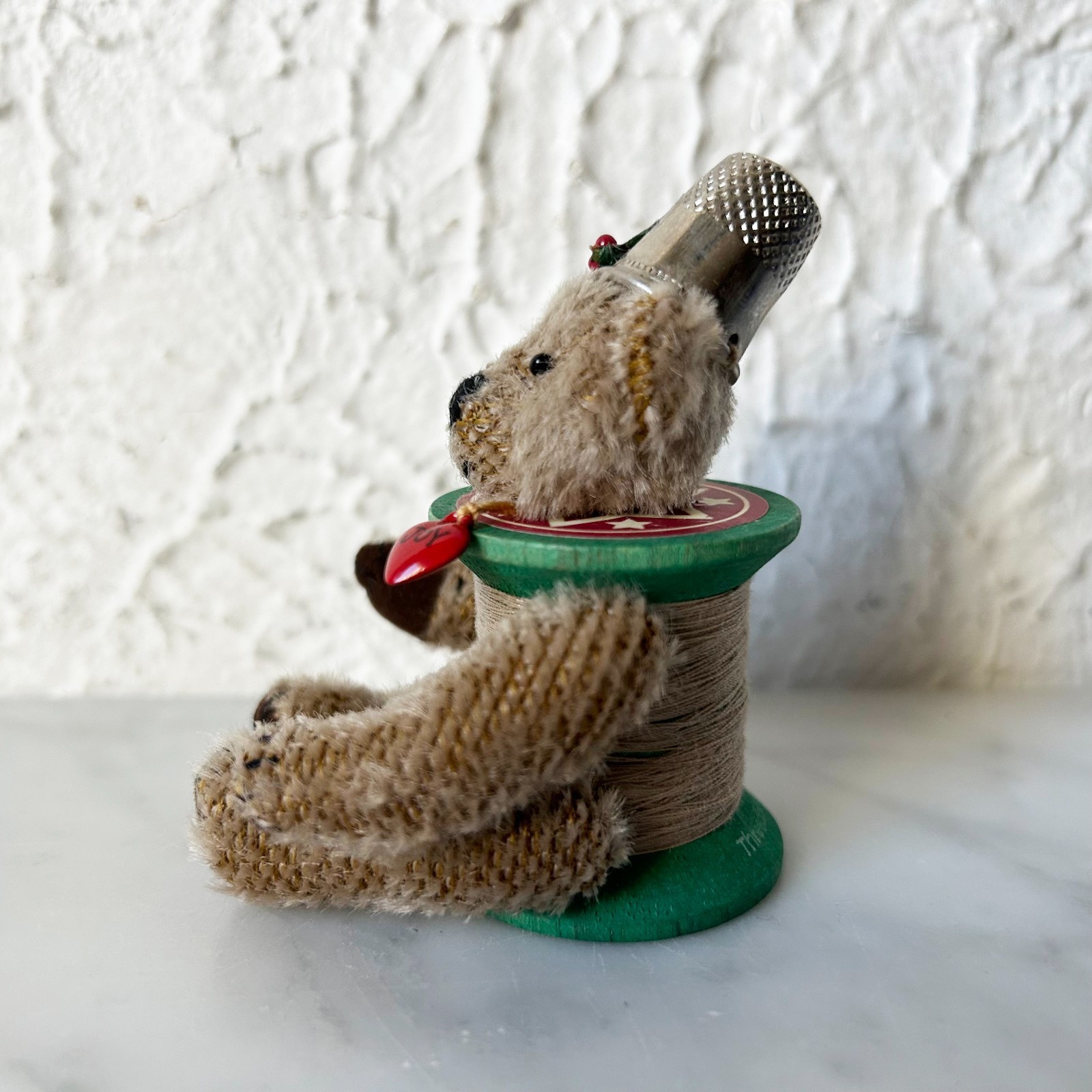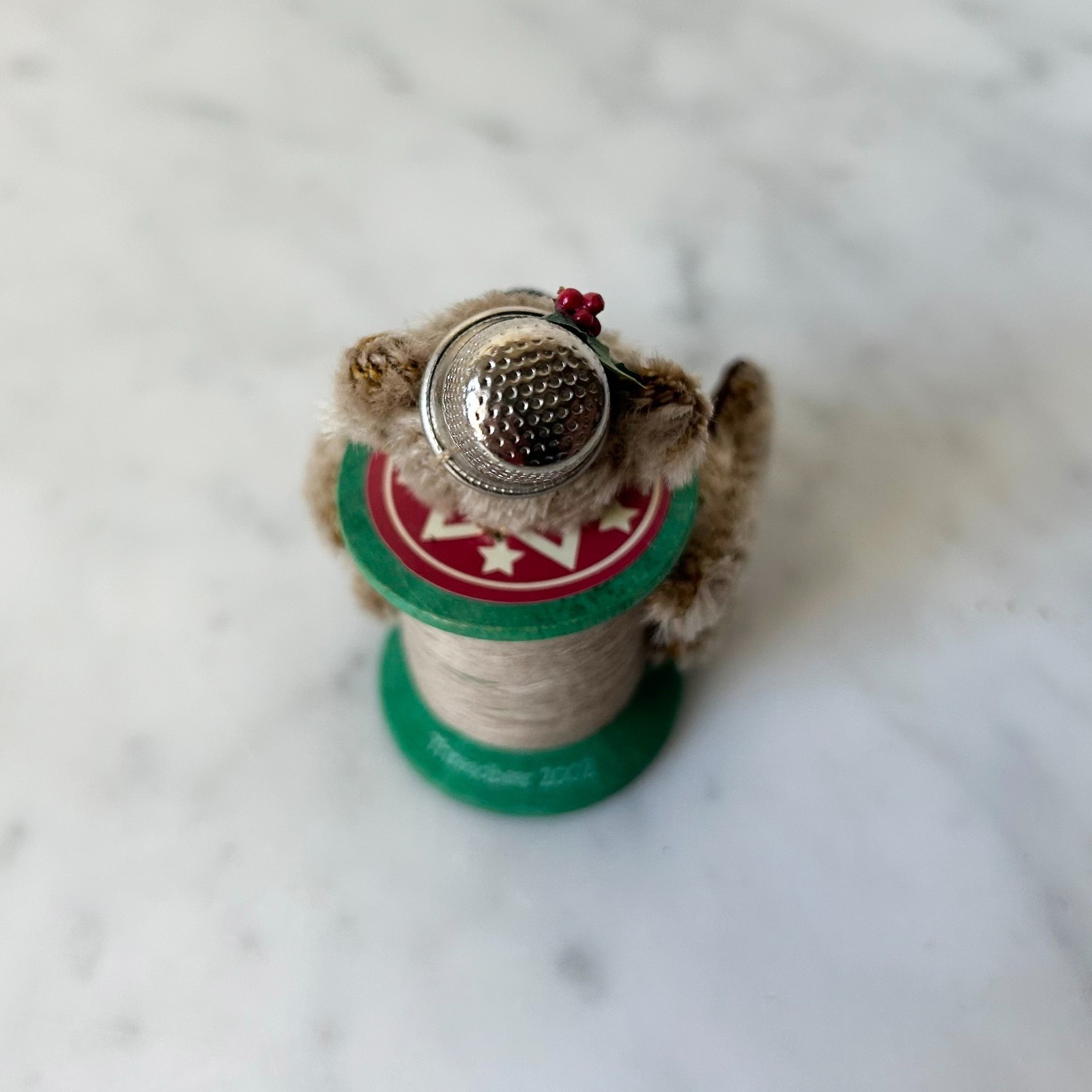 Hallmark Threadbear Christmas Ornament 2002 - Teddy Bear Thread Spool Thimble