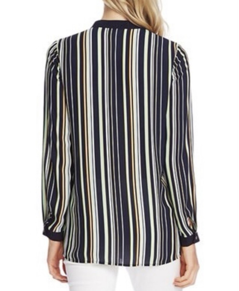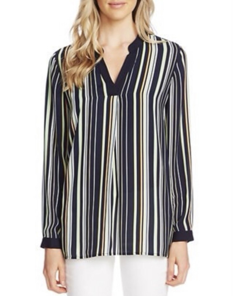 Vince Camuto Vertical Stripe Split Neck Blouse NWT New Medium Reg $89