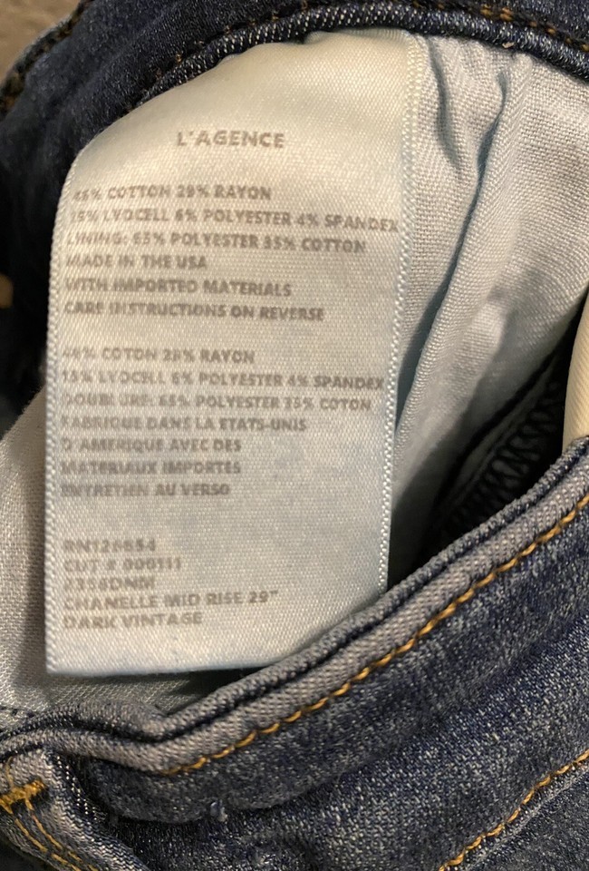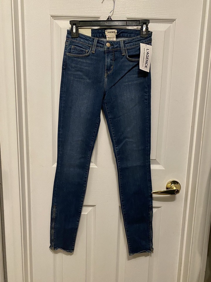 L?AGENCE Chanelle Mid Rise Skinny Zip Jean Dark Vintage Sz 25 NWT New Lagence.