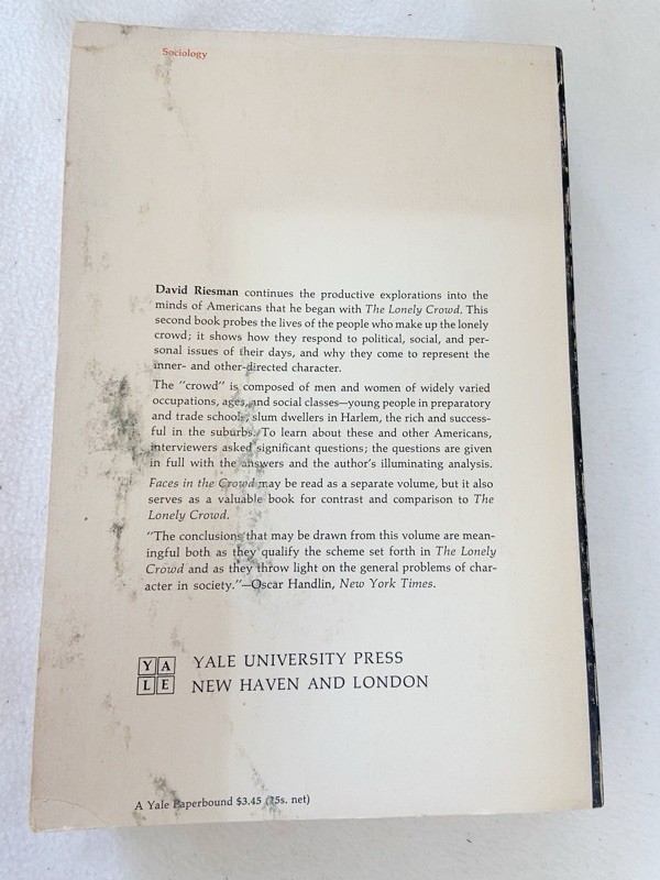 Faces In the Crowd by David Riesman PB 1965 and 49 similar items