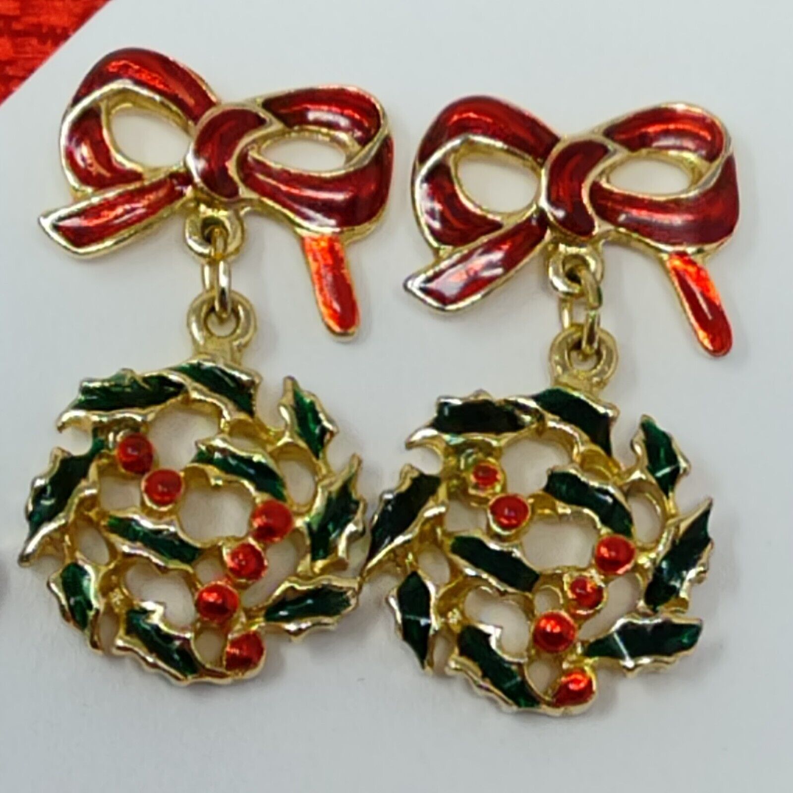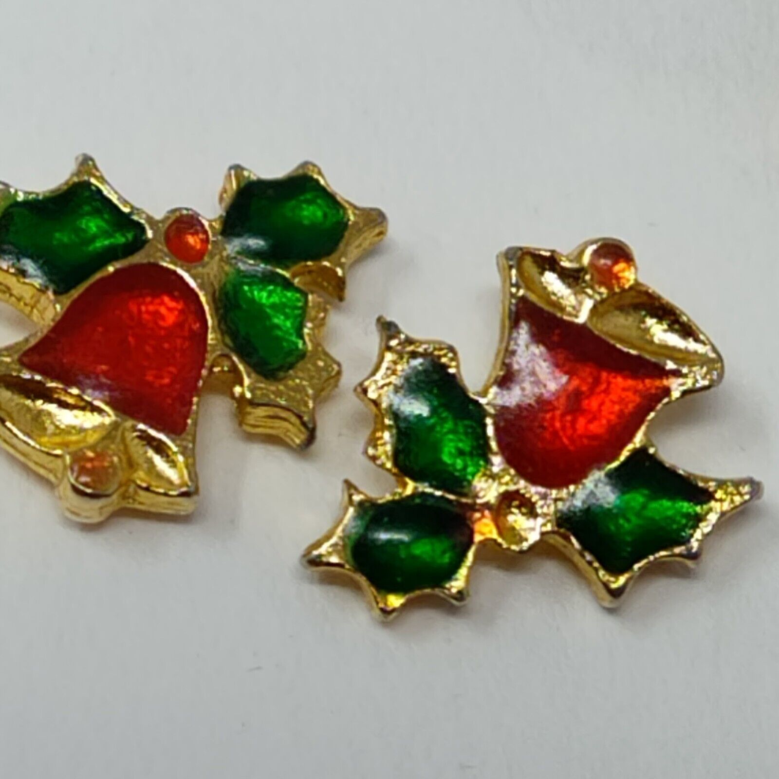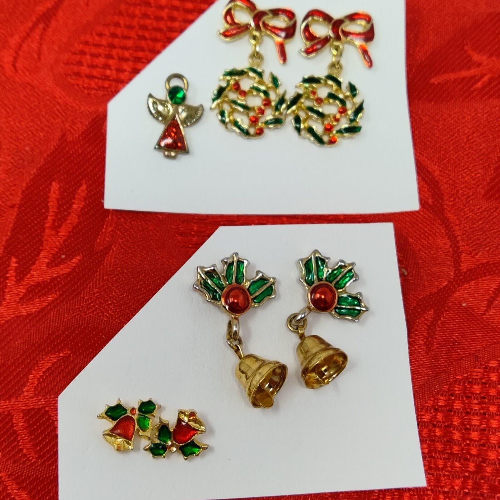 Christmas Holiday Stud Pin Pierced Earrings Lot Of 4 Bells Angel Wreath Etc