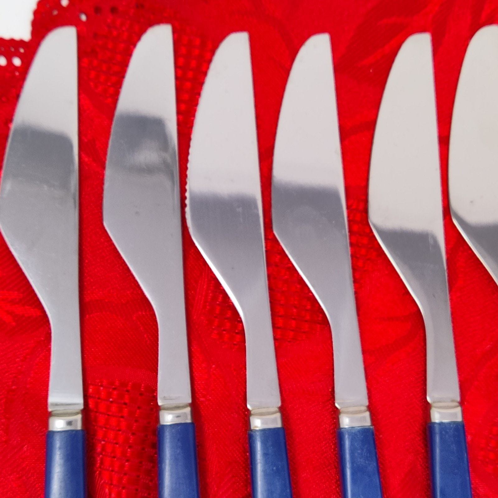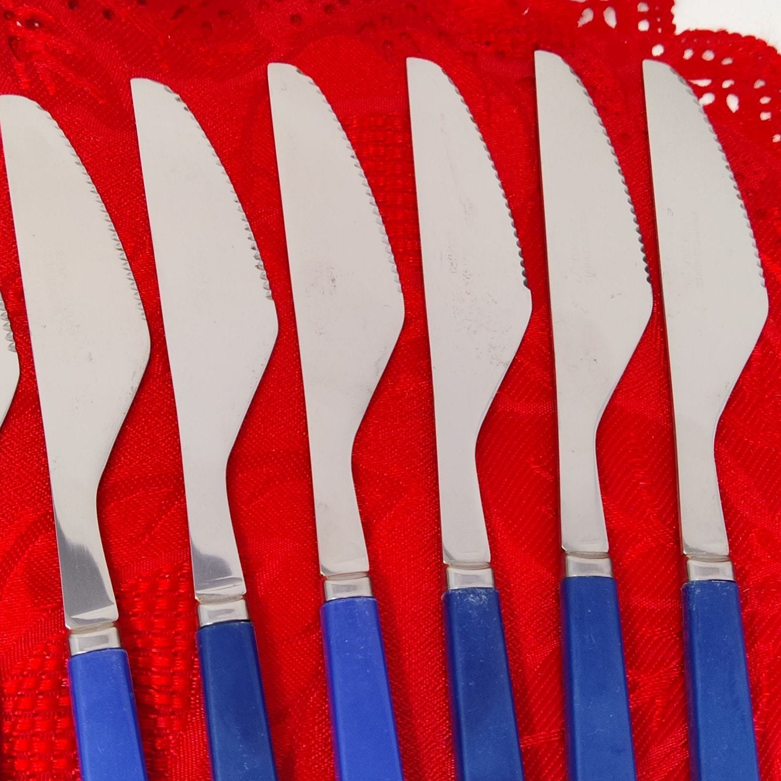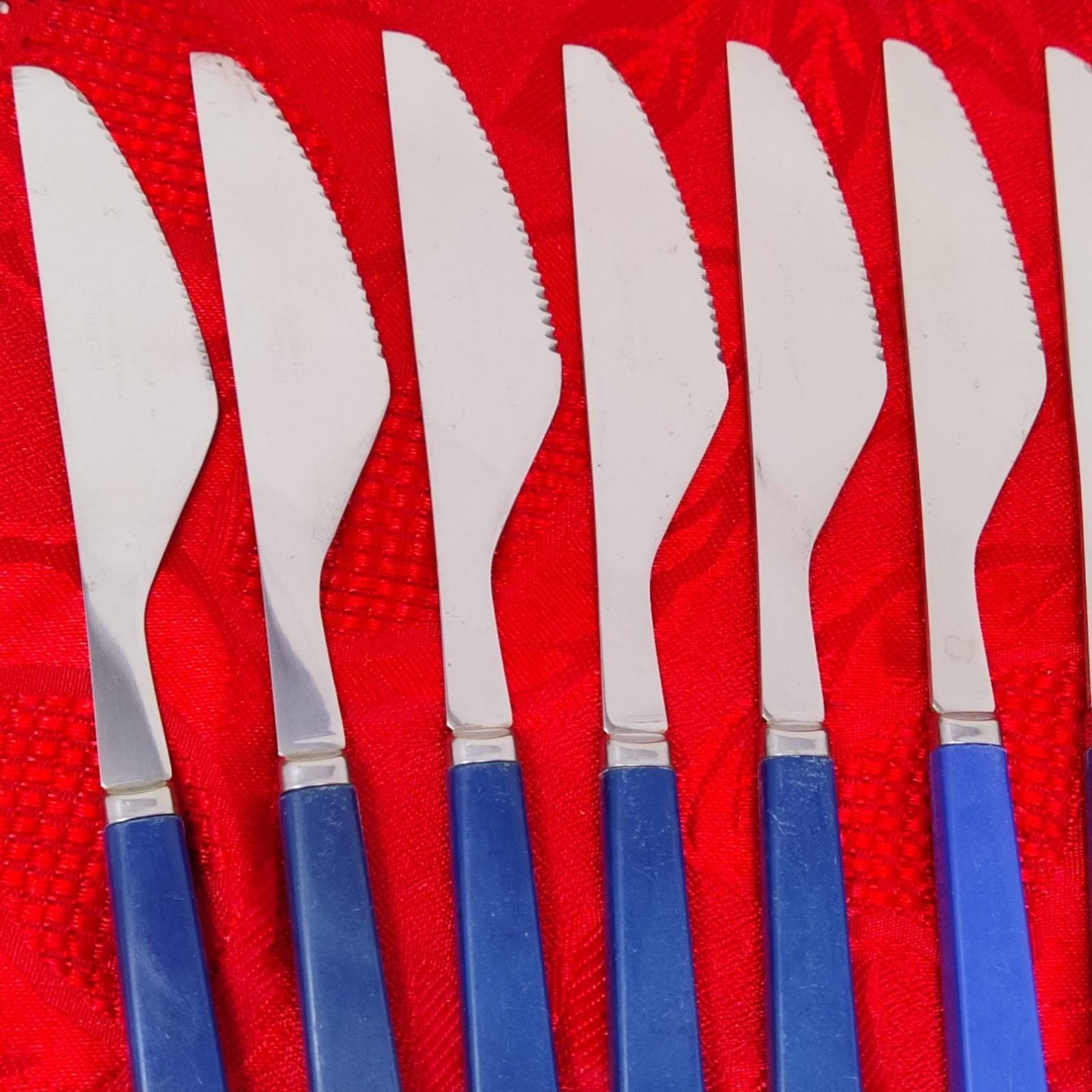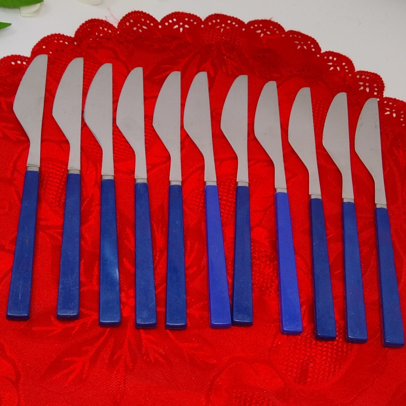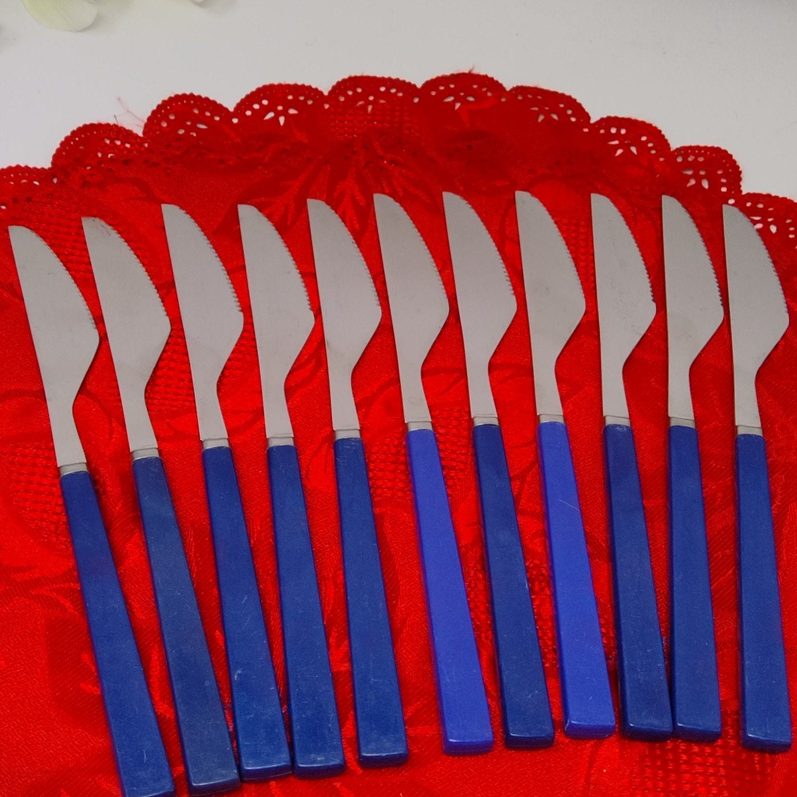 11X Anacapa Stainless Cubed Plastic Handle Blue Butter Knife 8" Vtg