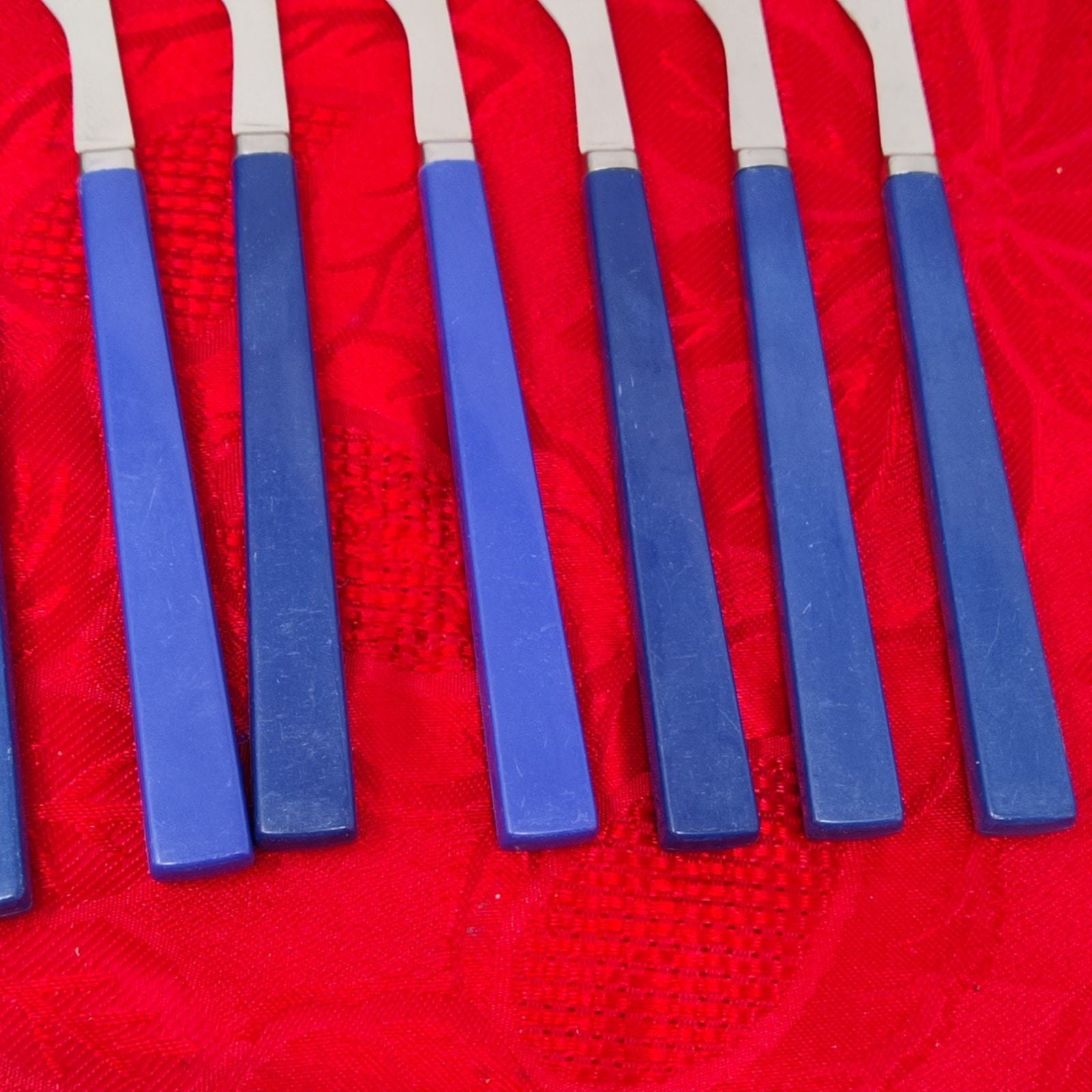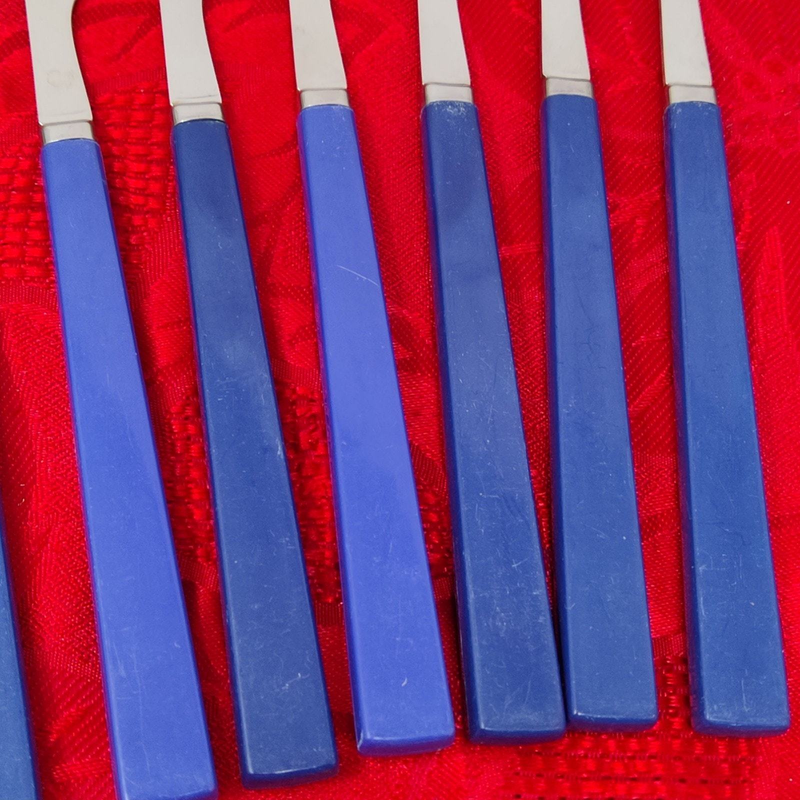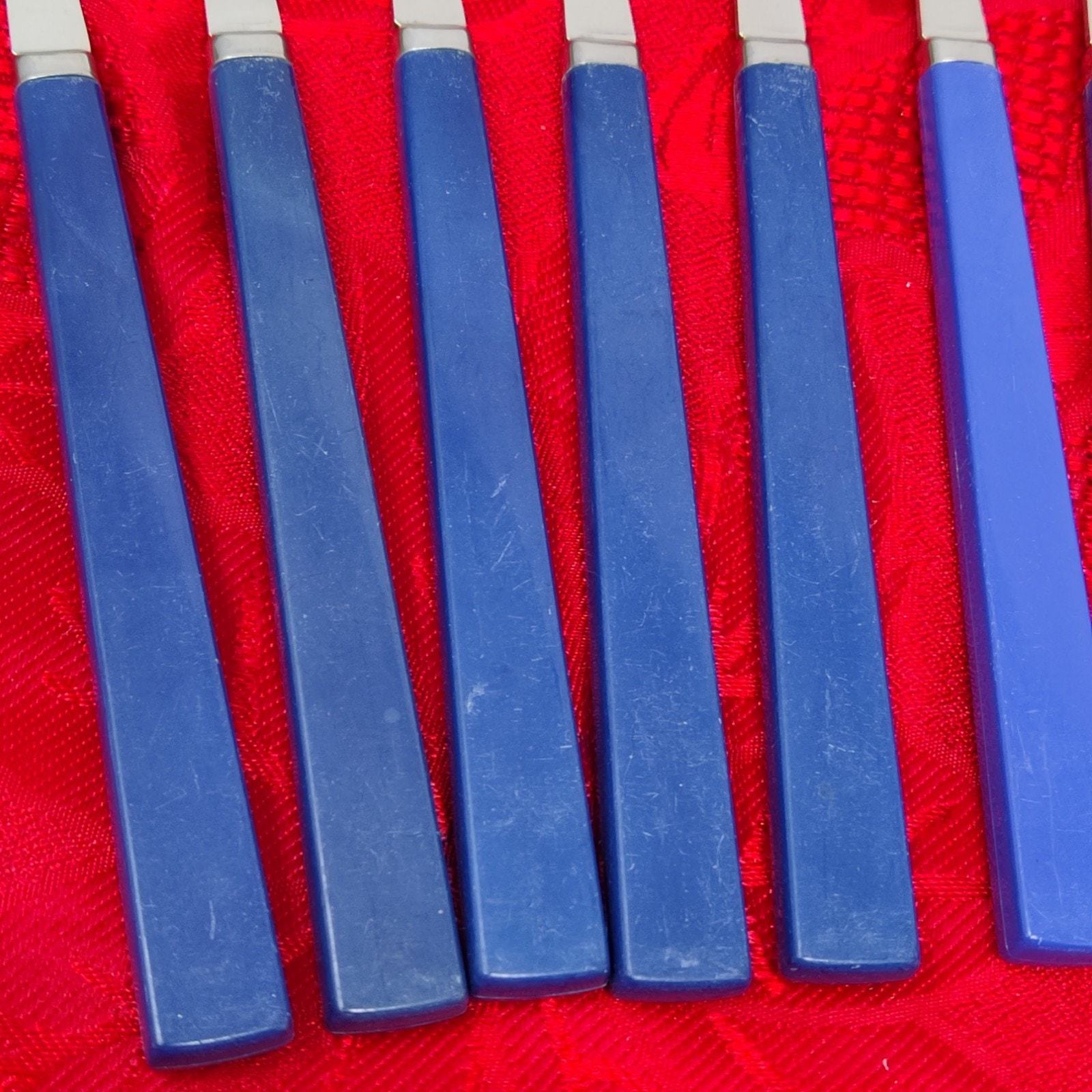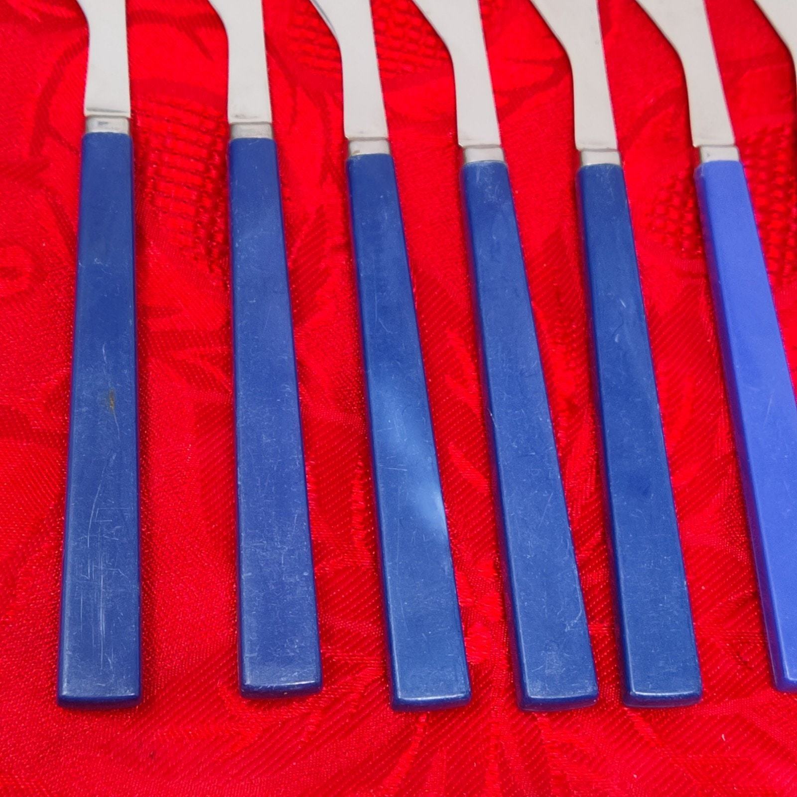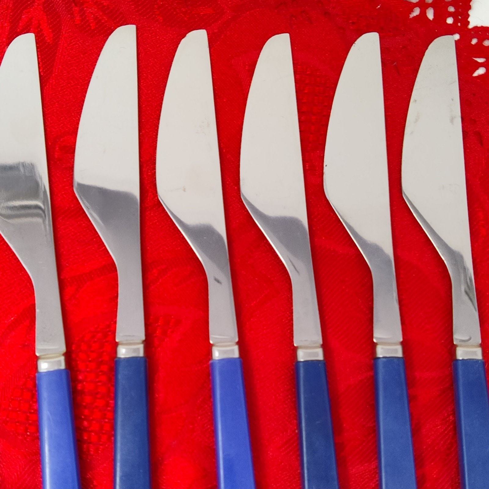 11X Anacapa Stainless Cubed Plastic Handle Blue Butter Knife 8" Vtg