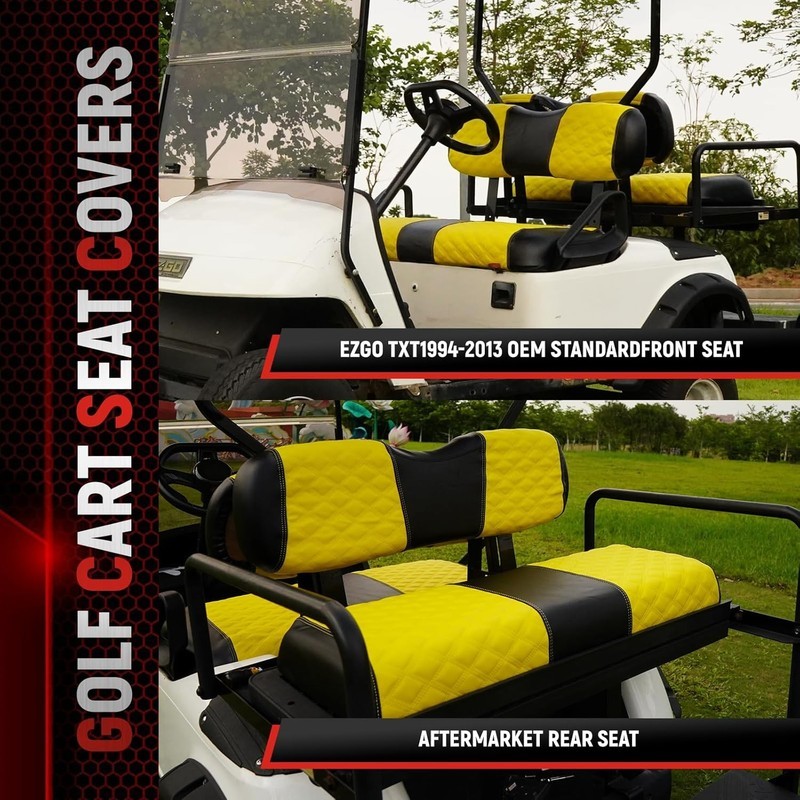 Golf Cart Seat Covers Yellow Waterproof for EZGO TXT 1994–2013 Front & Rear 4PCS