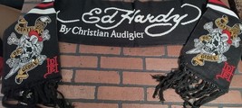 Ed Hardy By Christian Audigier-2000s Death Or Glory Vtg Bufanda Negra ~ sin Usar