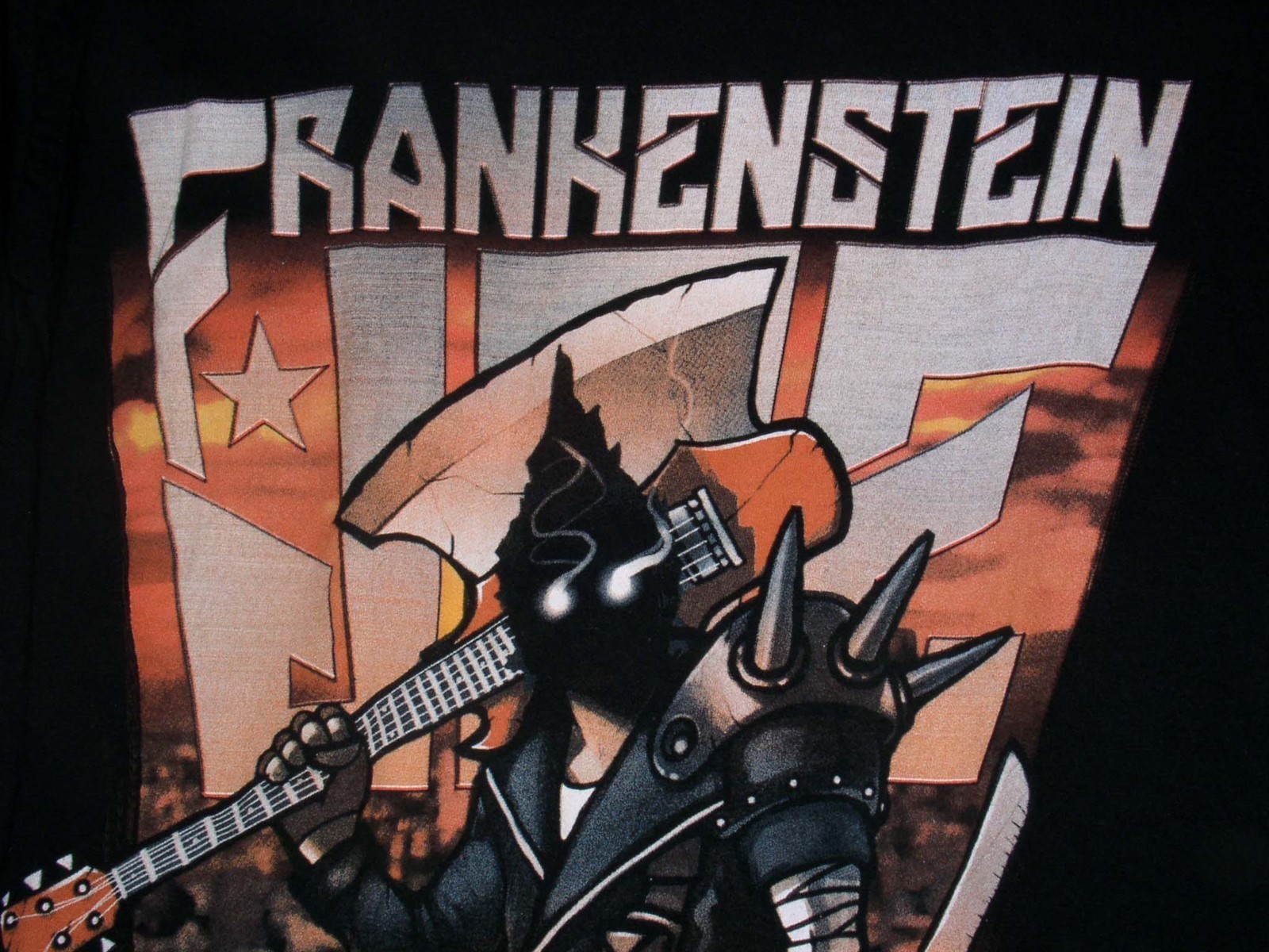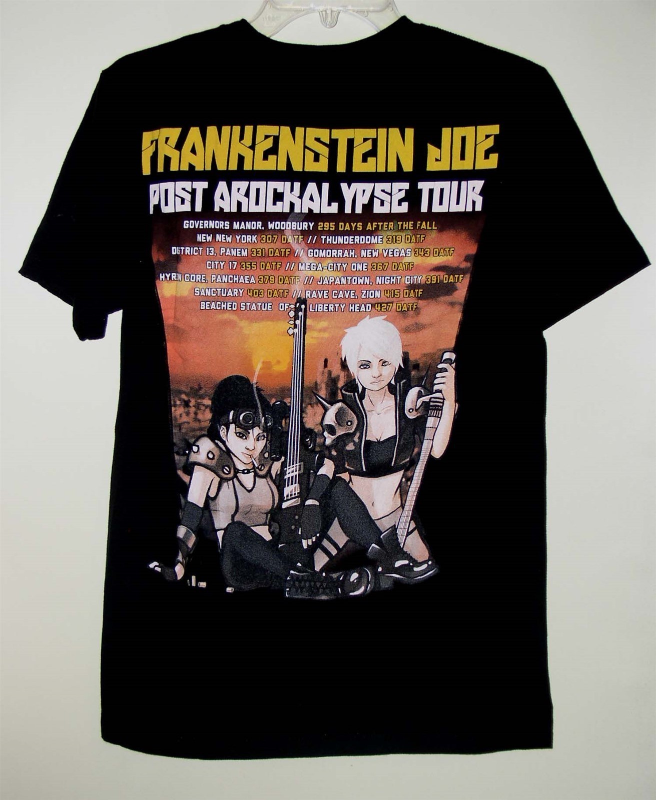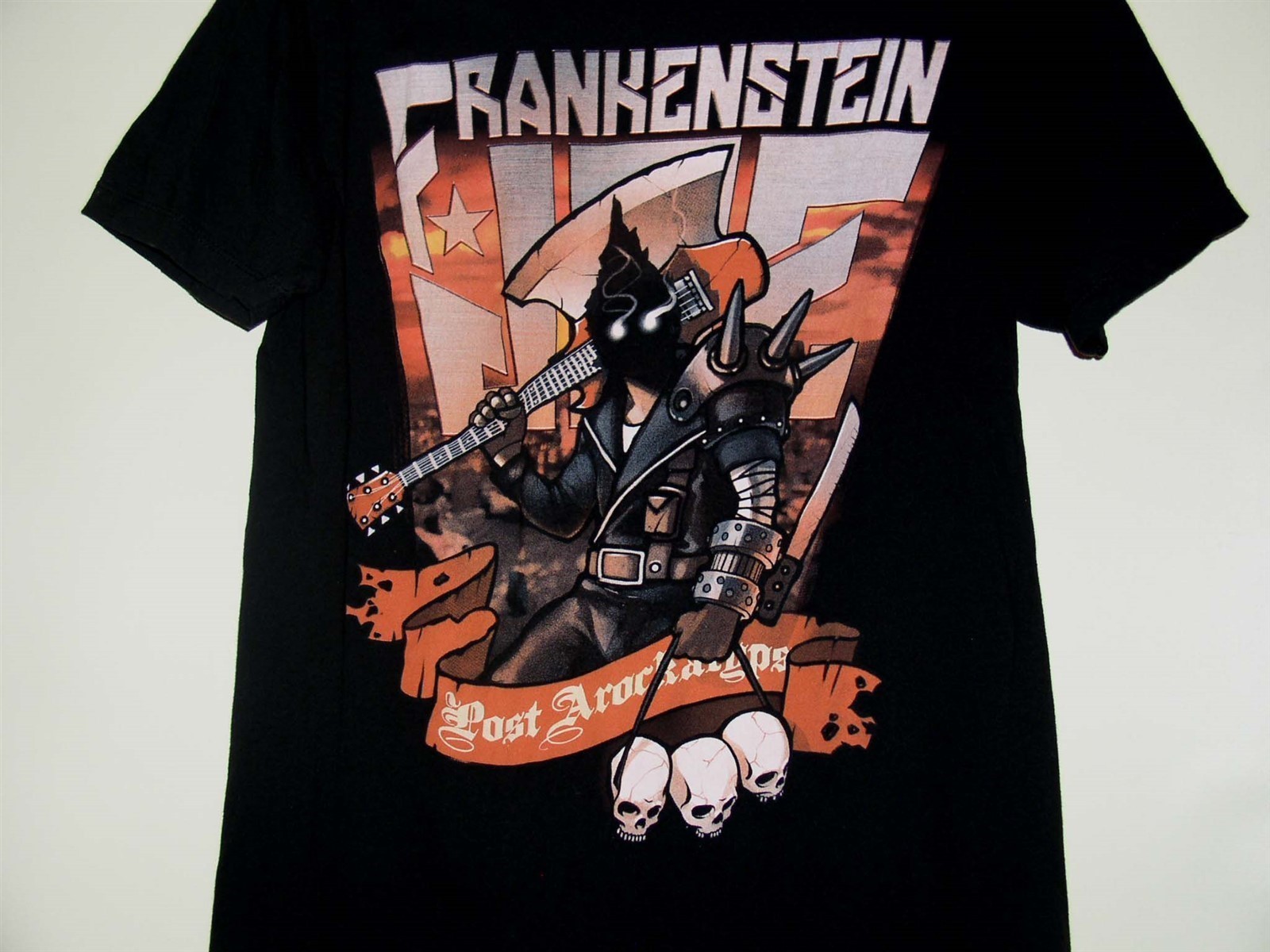 This is a very scarce Anime t shirt entitled: Frankenstein Joe Post Arockalypse Tour. Shirt is undated and I believe manufactured without a tag. It wasn't removed or cut, it was never present.