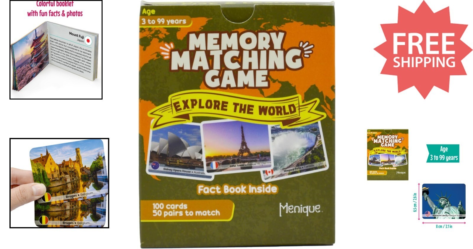 100 Card Global Landmark Matching Game with Educational Booklet for Families