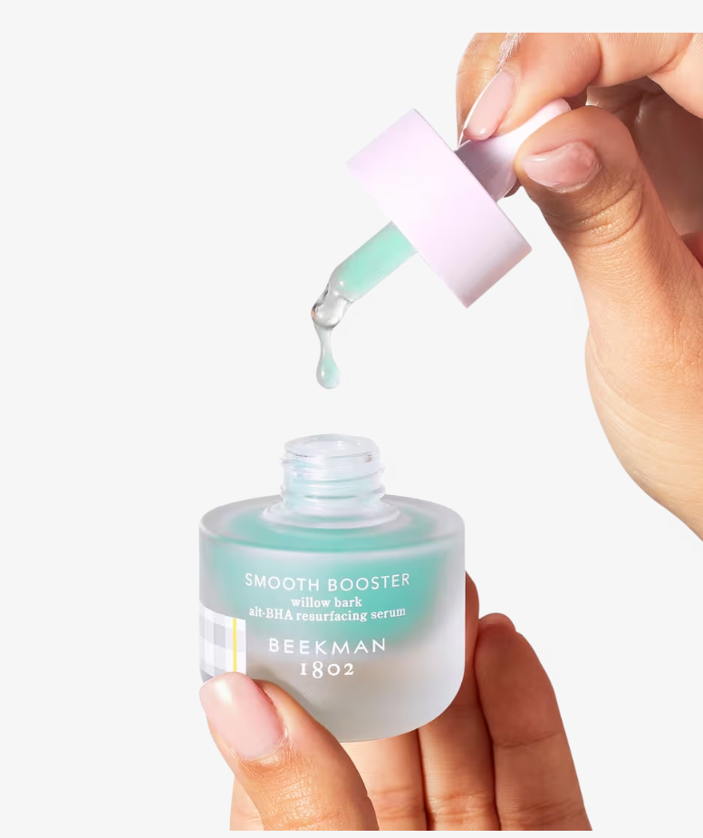 The first Clinically Kind resurfacing booster made for sensitive skin. Beekman 1802's Smooth Booster Willow Bark Exfoliating Serum is a vegan, concentrated serum powered by willow bark extract, which is a less irritating alternative to salicylic acid and is clinically tested to smooth skin.