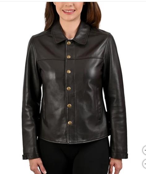 Frye Womens Leather Jacket Brown Pockets Adjustable Cuffs Snap Buttons