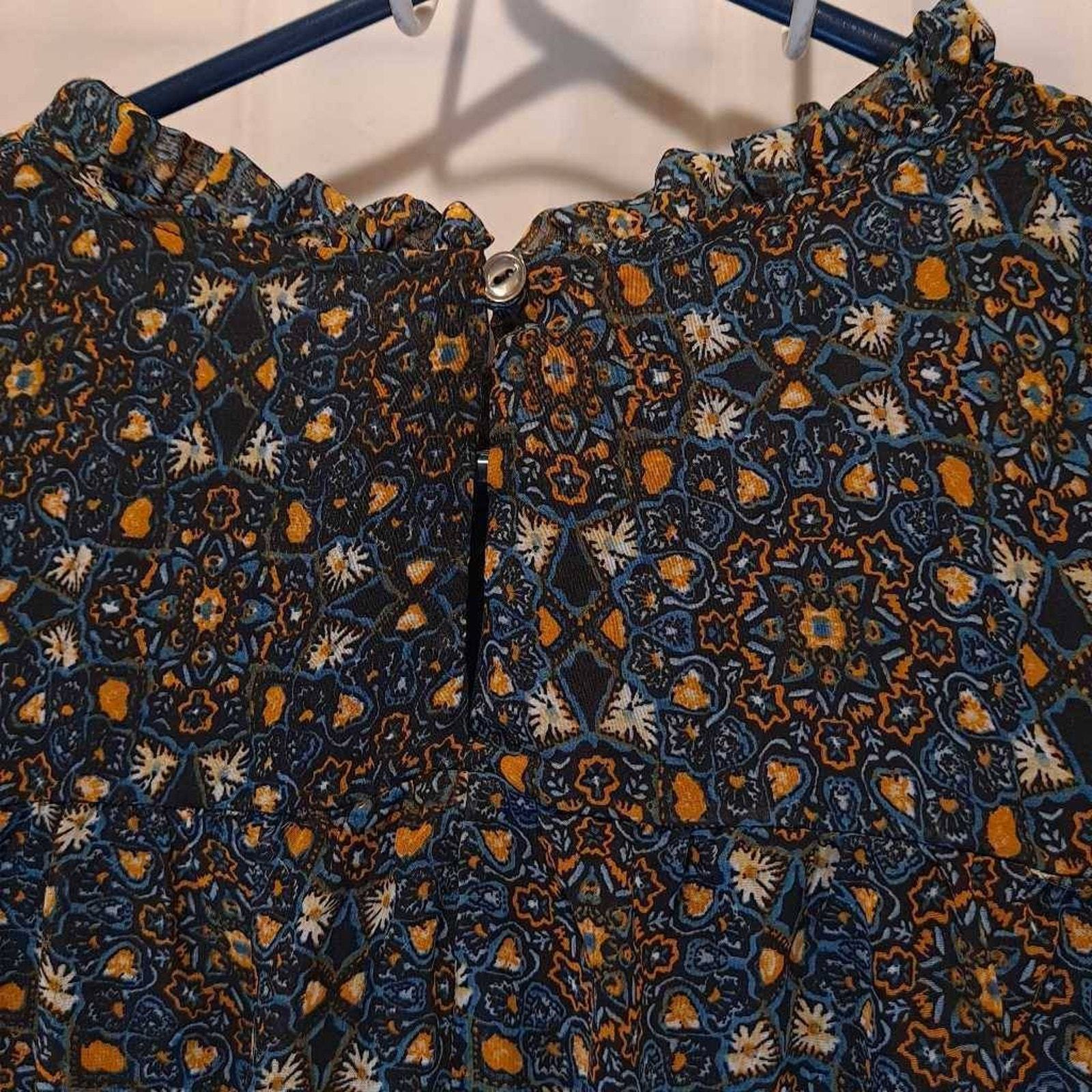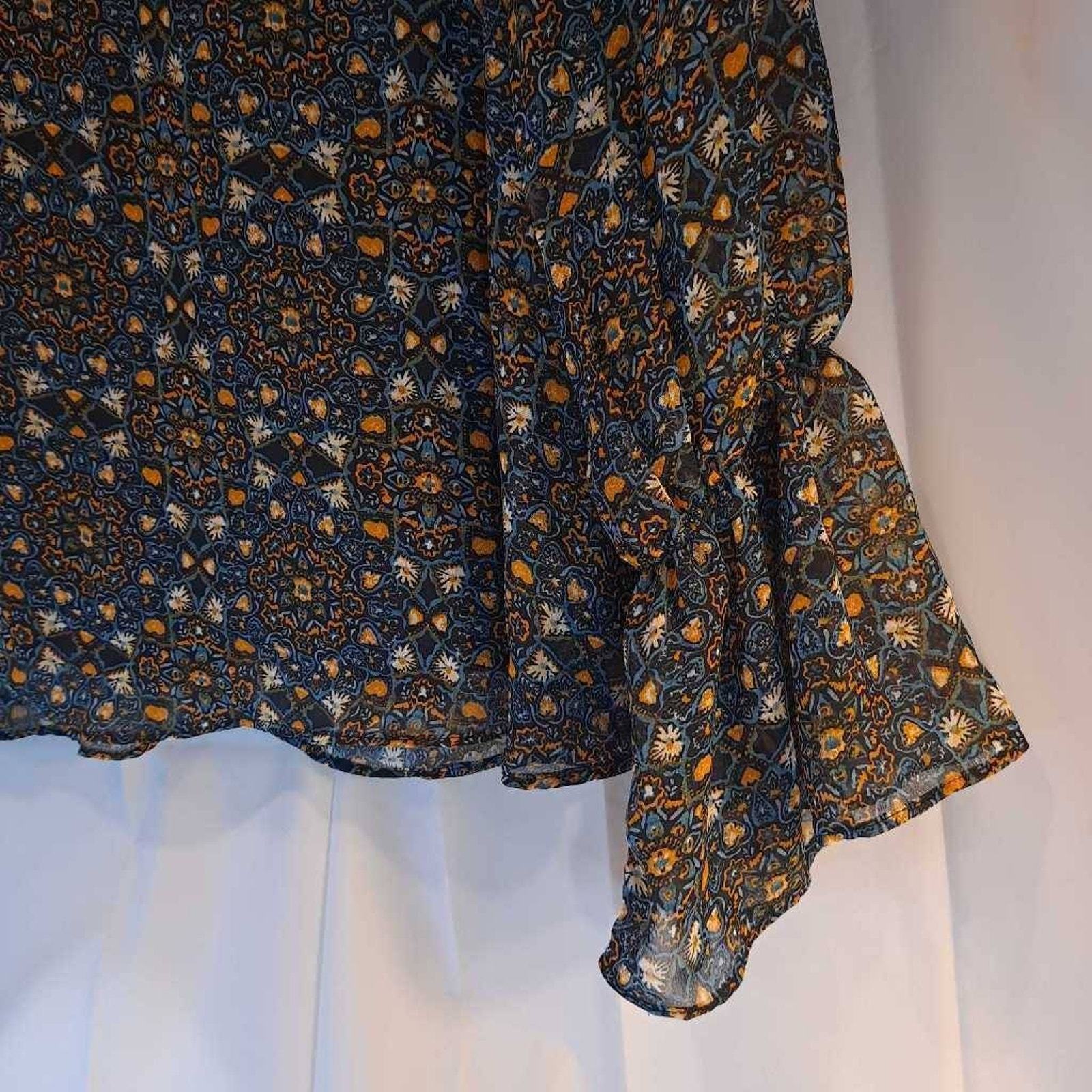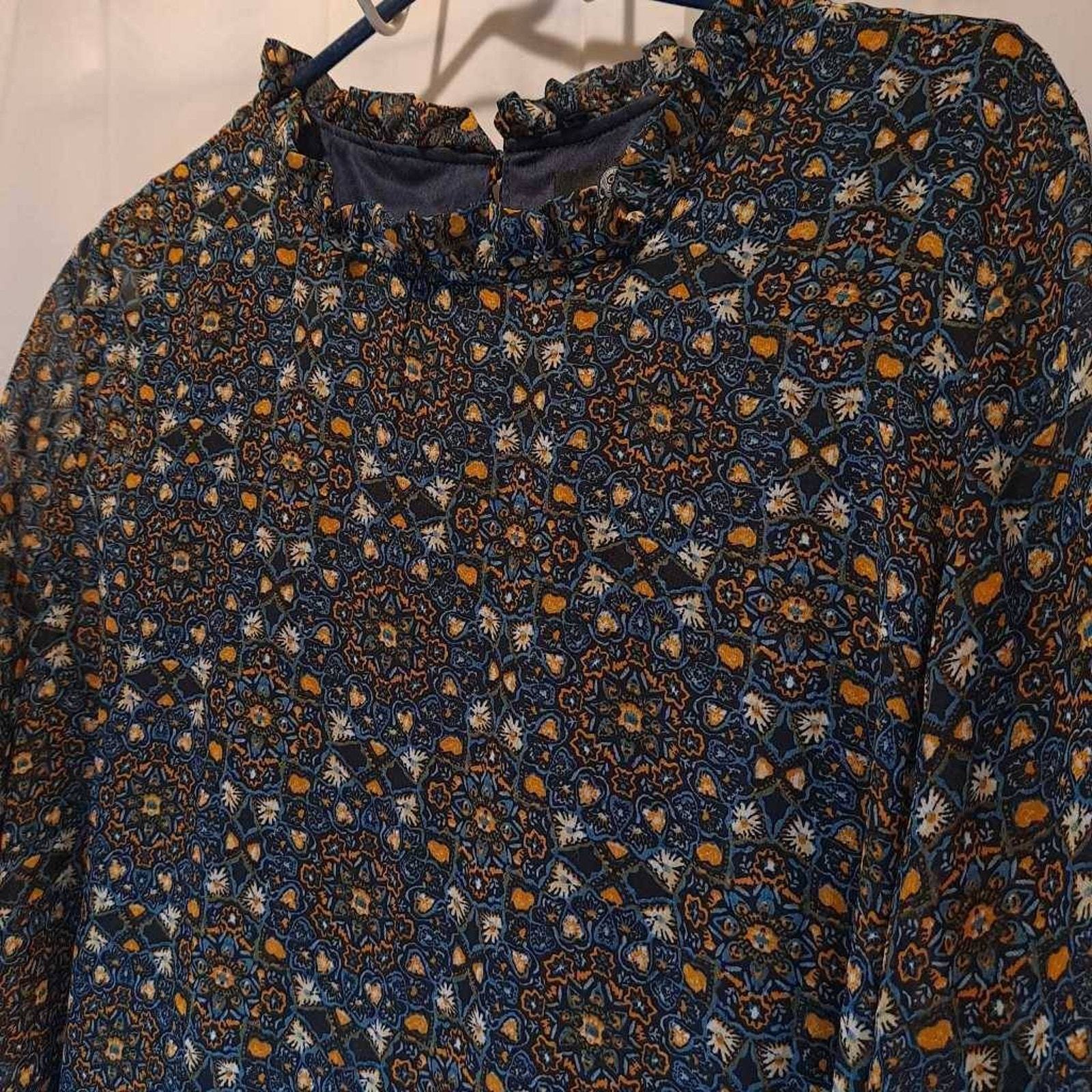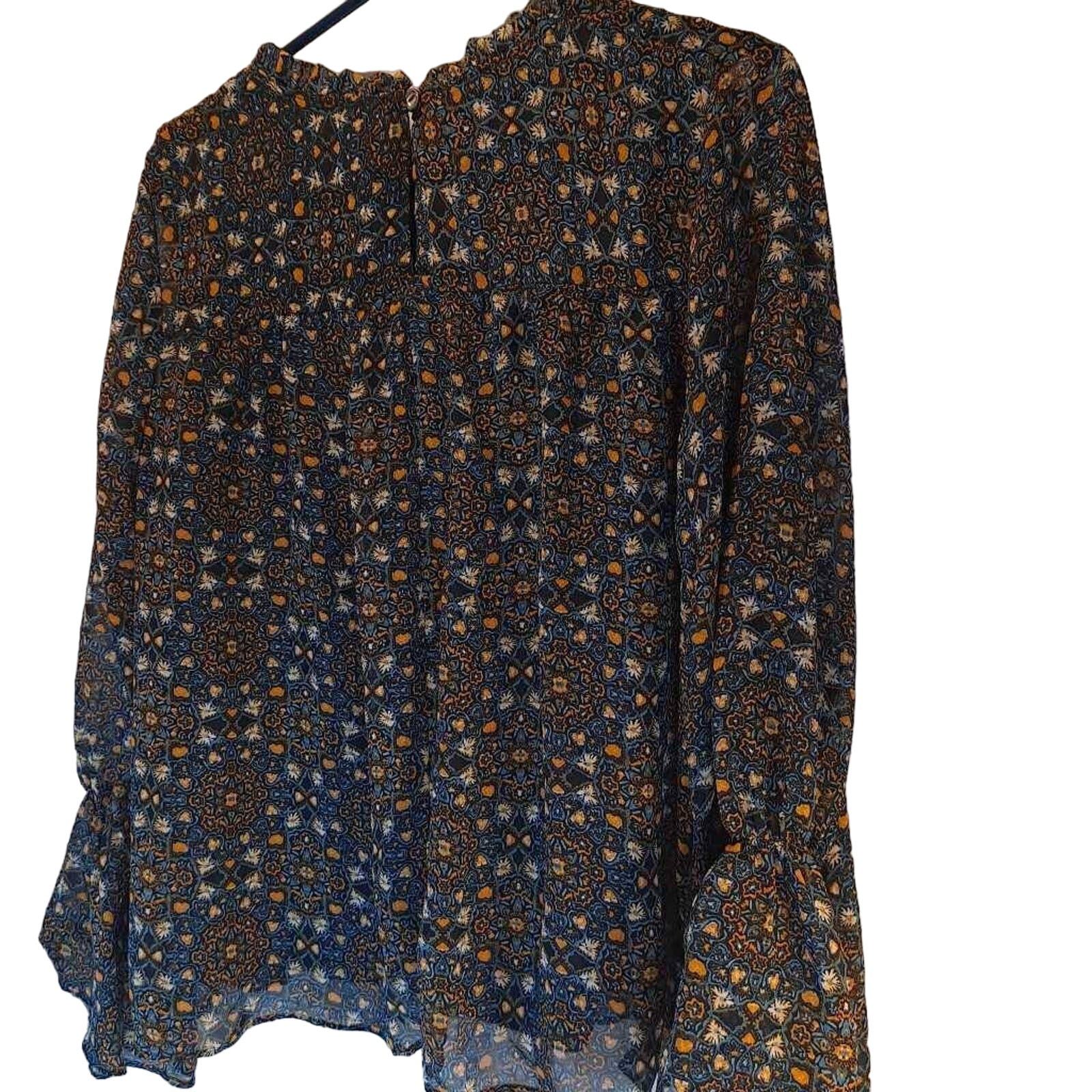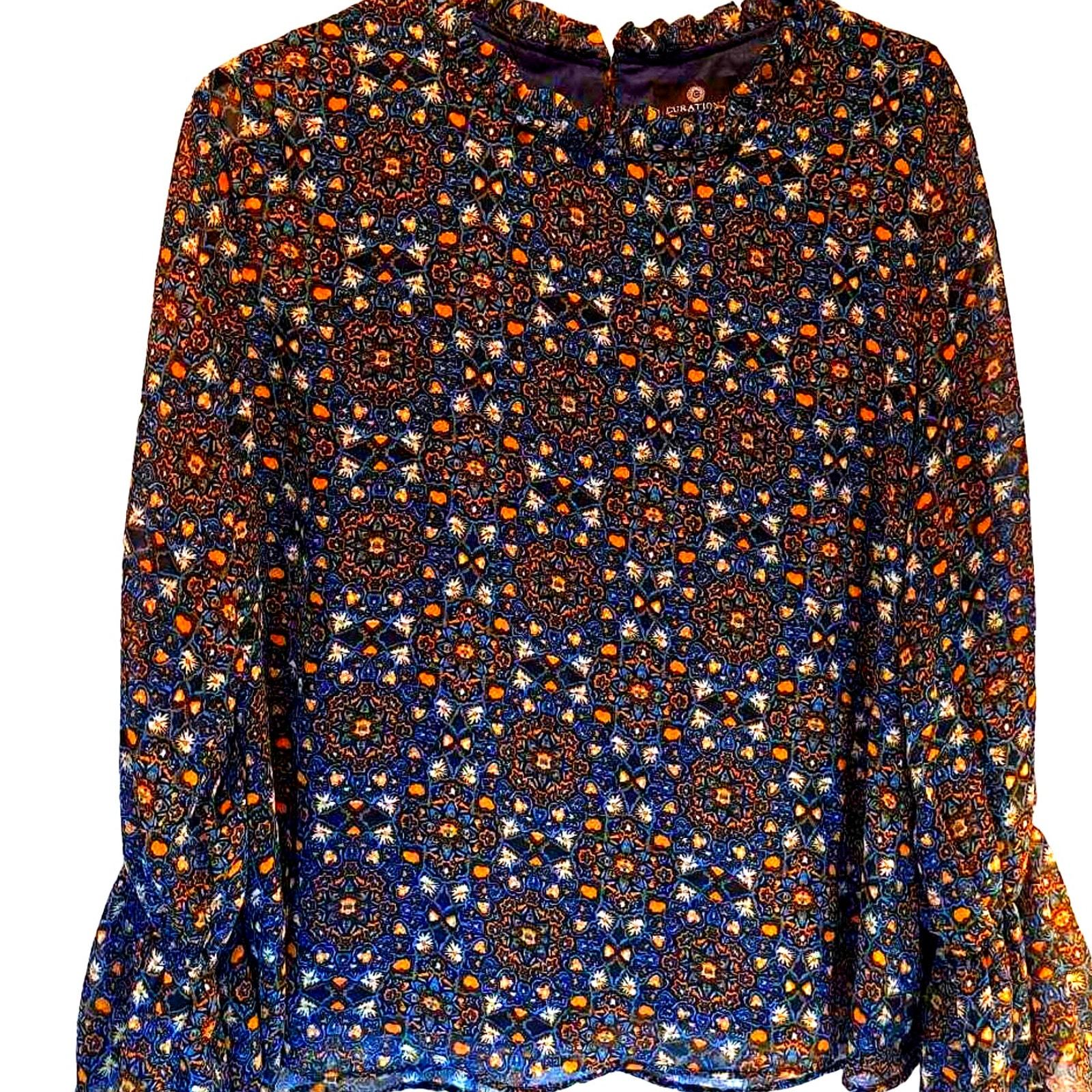 Curations Women's Blouse Multicolor Long Sleeve Flare Jewel Neck Lettuce Edge M