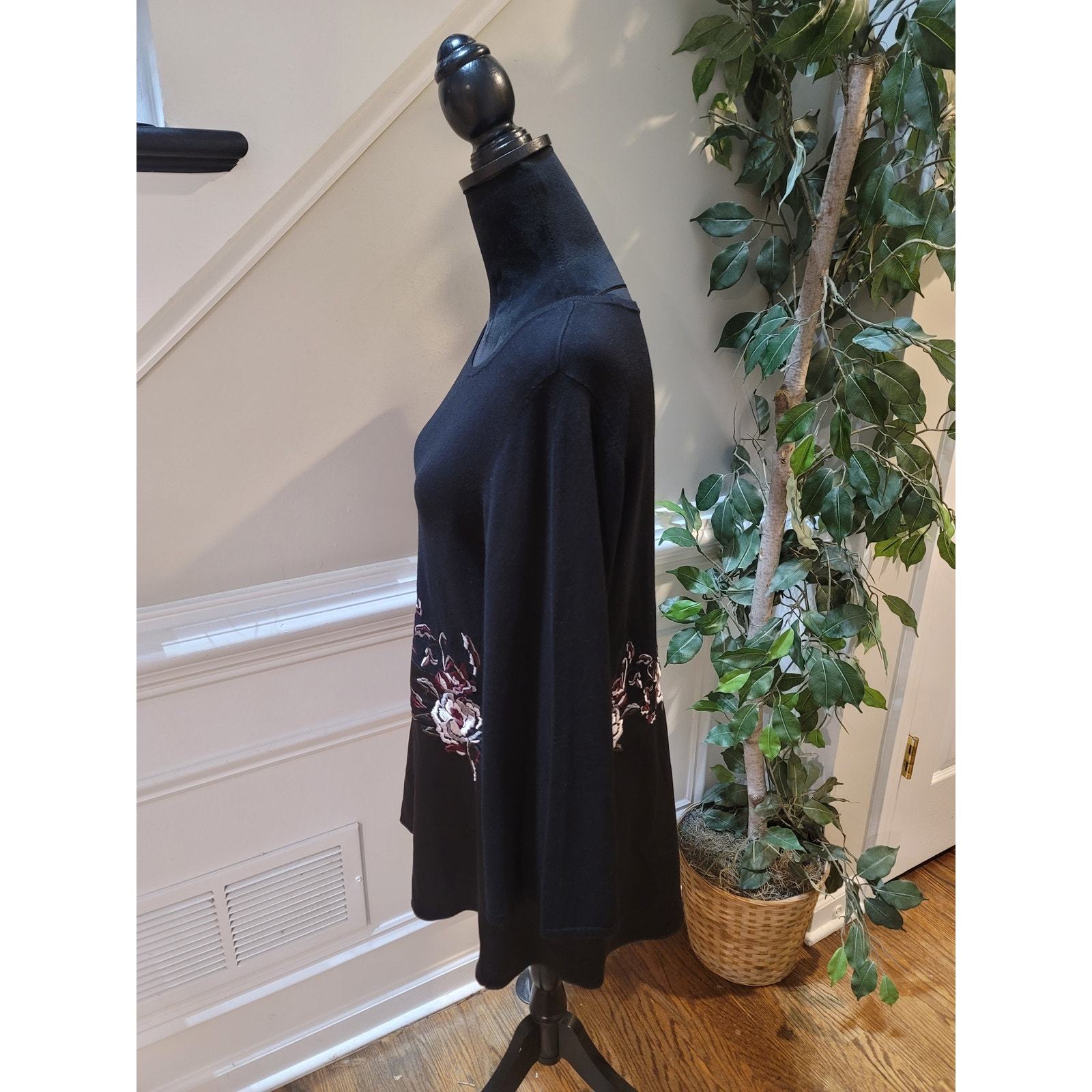 Alfani Sweater Women's Medium Black Floral Embroidered Long Sleeves Tunic