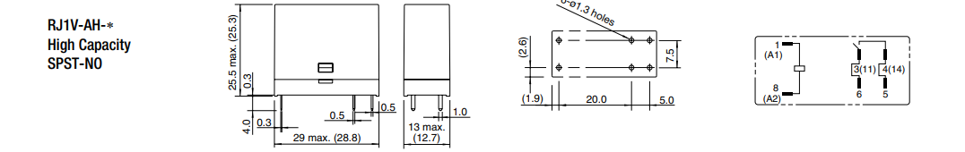 RJ1V-AH-A24 IDEC High Capacity PCB Power Relay 24VAC SPST-NO 16A 29x13x25.5 mm