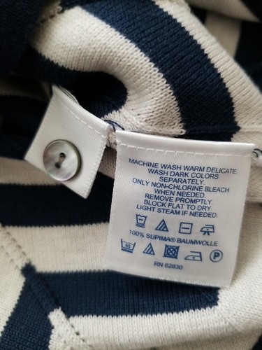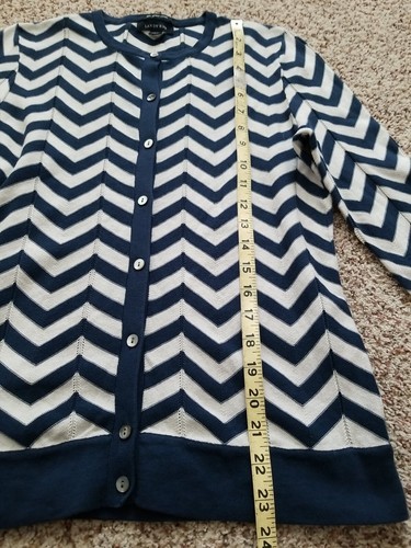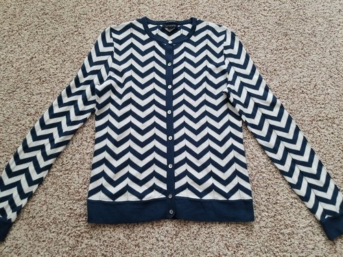 Lands? End Women?s Chevron Stripe Sweater Cardigan Cotton Navy/White Med(10-12)
