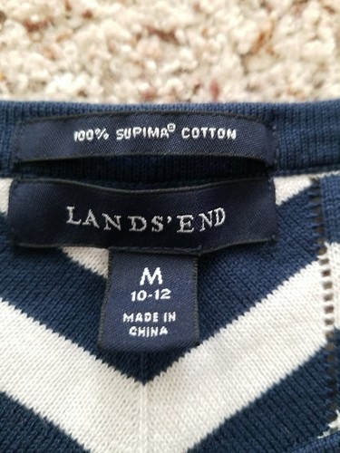Lands’ End Women’s Chevron Stripe Sweater Cardigan Cotton Navy/White Med (10-12)