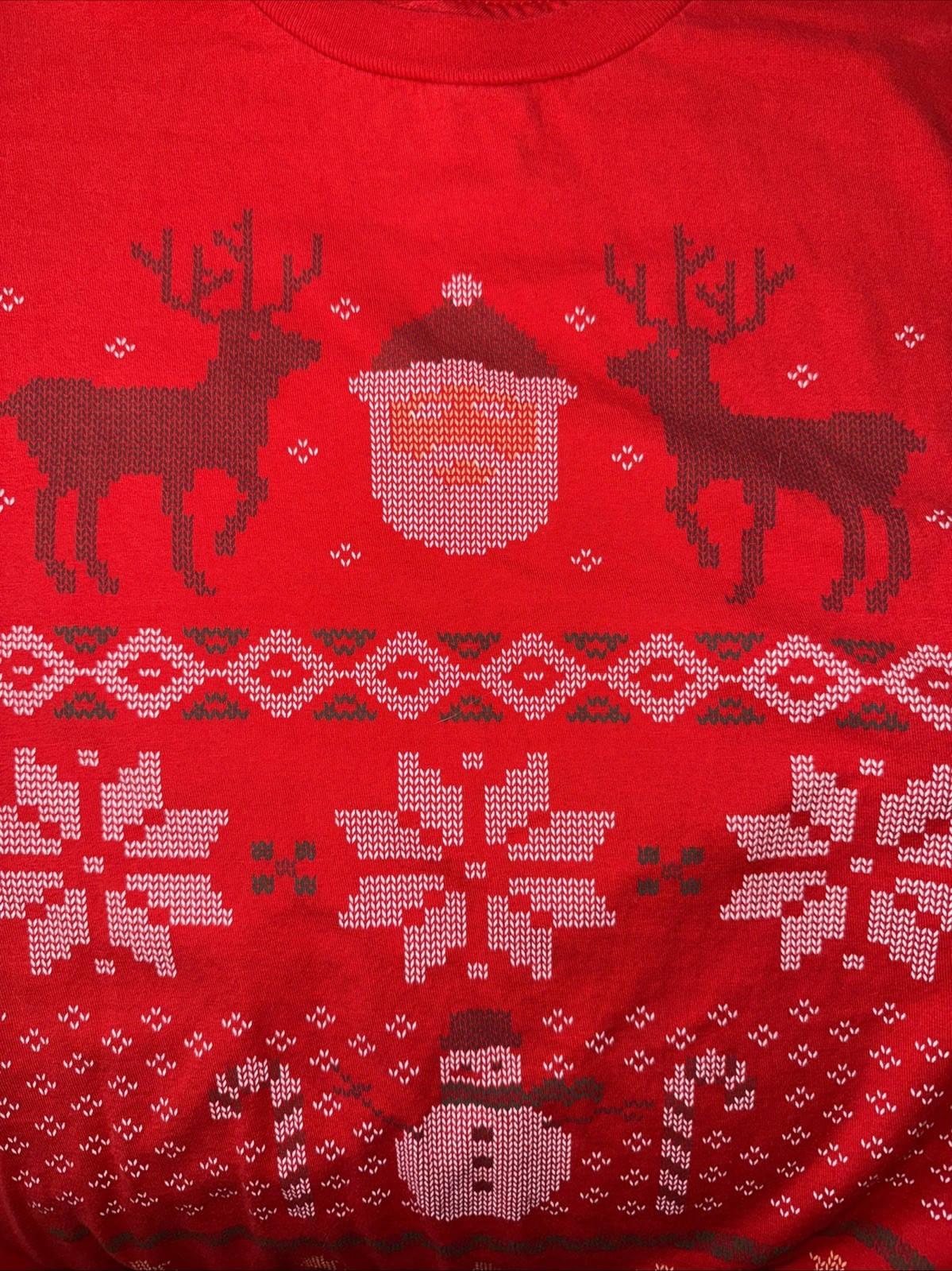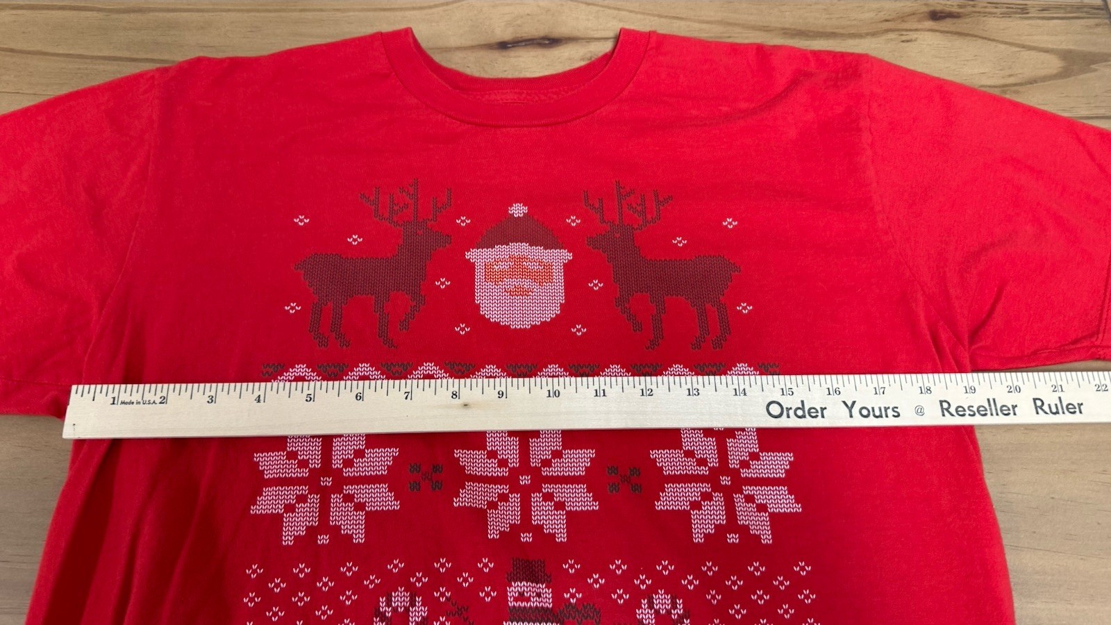 Christmas Holiday Short Sleeve T Shirt Size L Red- Reindeer Trees, Santa Unisex