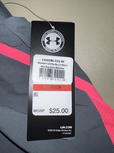 These Under Armour Fly By 2.0 shorts are perfect for any athletic occasion. The gray shorts with pink trim are made for women and come in a size XS. They are loose fitting and made with high-quality materials to ensure comfort during any physical activity. The brand is Under Armour, a trusted name in athletic wear. These shorts have a stylish, athletic look and are perfect for any woman looking to stay active and comfortable.