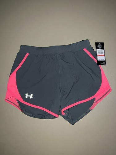 Under Armour Loose Womenโs Fly By 2.0 Shorts Size XS Gray With Pink Trim