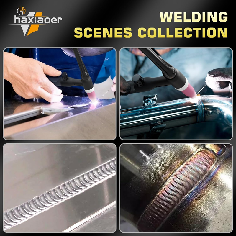 ?205A High-Performance Lift-Shot TIG Welding Torch? : haxiaoer air-cooled WP-17V welding torch has a rated current of 205A and can handle 1/2-inch aluminum/stainless steel materials. It uses lift-shot TIG technology to achieve arc ignition without scratching the workpiece. Pure copper wire ensures low resistance and efficient heat dissipation, making it suitable for prolonged use in professional environments.