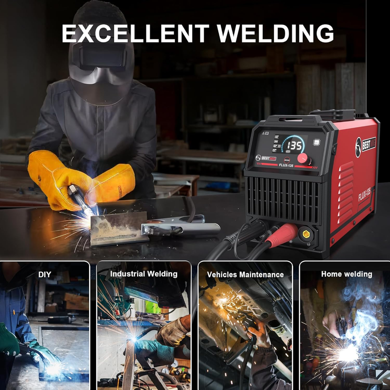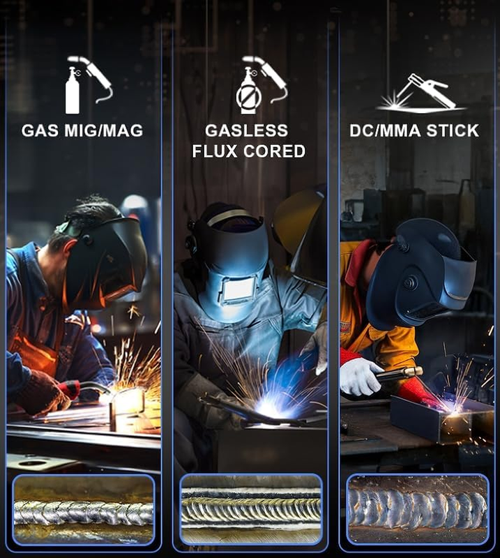 ?4-in-1 Multifunctionality Superior Welding Performance?The Ehomful MIG145 supports dual voltage of 110/220V and combines Gas/Gasless MIG,Stick and Lift TIG in one unit.Supporting both gasless flux-cored wire and solid wire,offering a 30% increase in work efficiency compared to traditional MIG welders.Featuring a smooth arc, excellent penetration, and minimal spatter, it easily handles stainless steel, carbon steel, and mild steel up to 3mm (2/5") thick, meeting diverse welding needs.