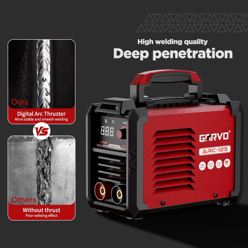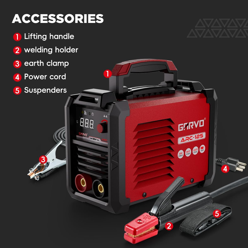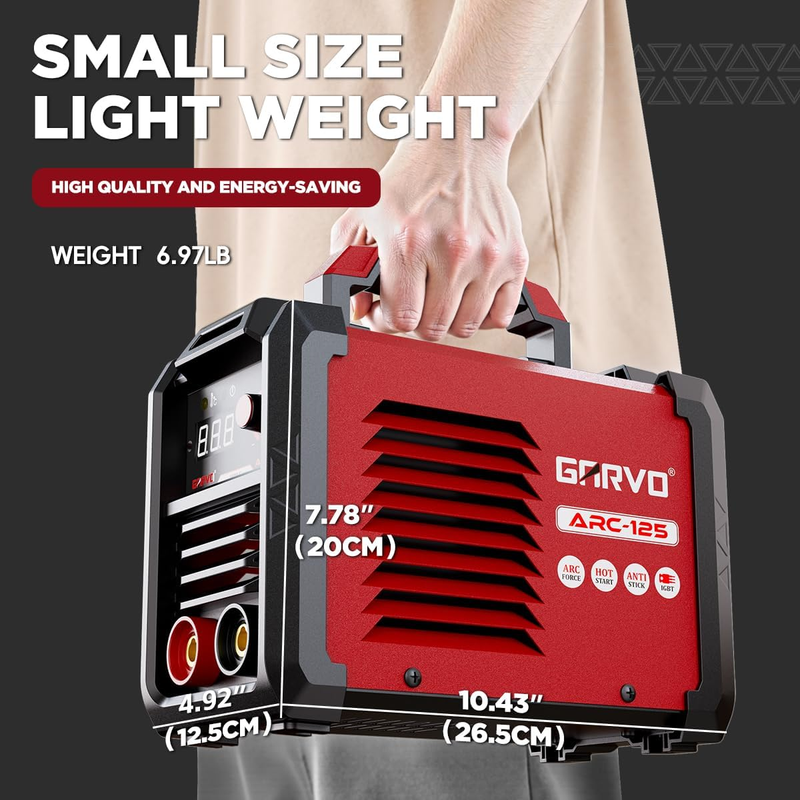 Wide Application: With 125A maximum output, promise it handling 1/8" (3.2mm) electrodes for welding mild steel, stainless steel, and cast iron easily. Ideal for automotive repairs, farm equipment maintenance, and DIY metal fabrication.