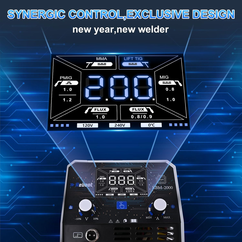 Just one button select and start working, makes welding simple and easy to do. Digital control and automatically match the recommended current and wire feeding speed when selecting the diameter of welding wire and gas material, also you can adjust the welding current according to your welding habit. Easy to work with beginners or professional welders