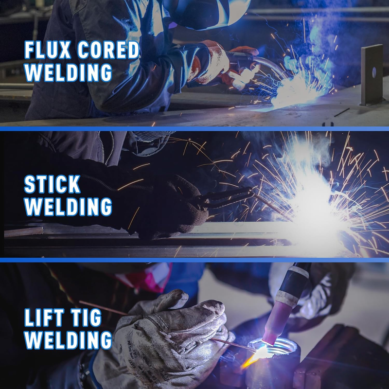 ?3-IN-1 WELDER?3 welding modes Flux Core Gasless or Gas MIG/ Lift TIG/ MMA meet your different requirements. Precise and stable welding with adjustable current and pulse frequency. Compatible with a wide range of metals and suitable for welding thin materials.